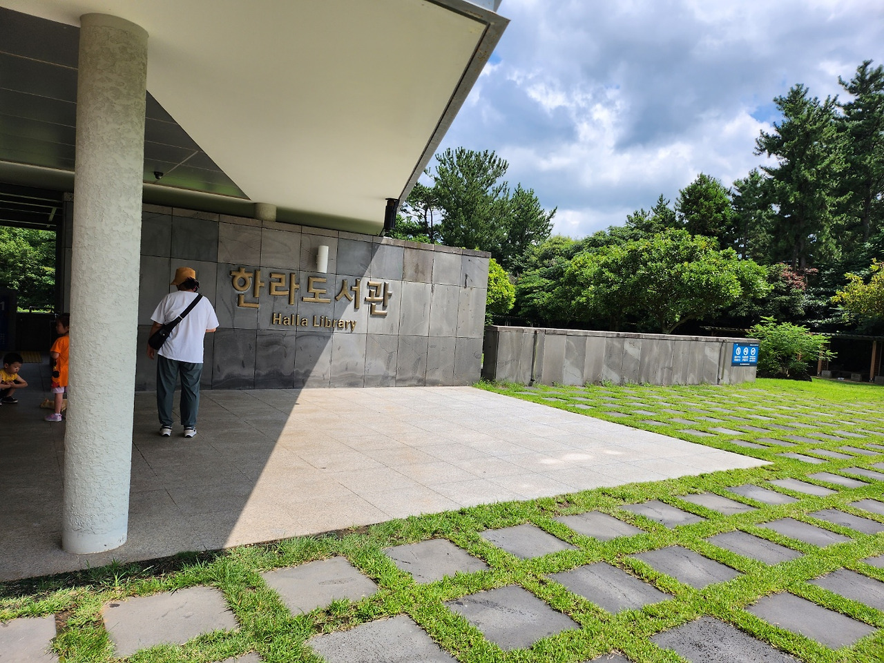 다음 행선지는 ‘한라 도서관’이다. 숙소에서 가까운 도서관이 두 곳이 있었는데, 하나는 ‘조천 도서관’이었고, 또 하나는 ‘동녘 도서관’이었다. 아쉽게도 ‘조천 도서관’은 우리가 한 달 살기를 시작할 즈음에 재개관을 위한 준비로 문을 닫은 상태였고, '동녘 도서관'은 이동 동선과 정반대에 위치해 있었다. 그래서 제주 공항에 간 김에 그곳에서 가장 가까운 ‘한라 도서관’에 가기로 한 것이다. 우리 가족은 전국적으로 도서 대여가 가능한 ‘책이음’ 서비스를 이용하고 있어서 가지고 있던 회원증으로 제주 공공 도서관에 등록만 하면 바로 책을 빌릴 수 있었다. 풀과 나무가 많고, 주차장도 널찍한 한라 도서관은 주말이라 그런지 책을 보러 온 가족 단위의 사람들이 많았다. 어린이 자료실에 들어가 아이들은 각자 보고 싶은 만화책을 골라 의자에 앉아 보기 시작했고, 나는 집에서 함께 볼 그림책을 찾아보았다. 제주도에 온 김에 제주도에 관련된 그림책을 보면 더욱 좋을 것 같아 찾아보기도 했고, 곧 방문하는 친구들의 아이들이 볼 책들도 빌리기 위해 살펴보았다. 우리는 두 손 가득 책을 빌려 다시 숙소로 향했다. 무더운 날씨에 셋째의 유아차를 싣고 내리는 일이 생각보다 힘들었지만 마음만큼은 너무나 즐겁고 행복했다. 발길이 닿는 곳마다 내 마음은 이렇게 외치고 있었다. ‘우리가 진짜 제주도에 와 있구나.’