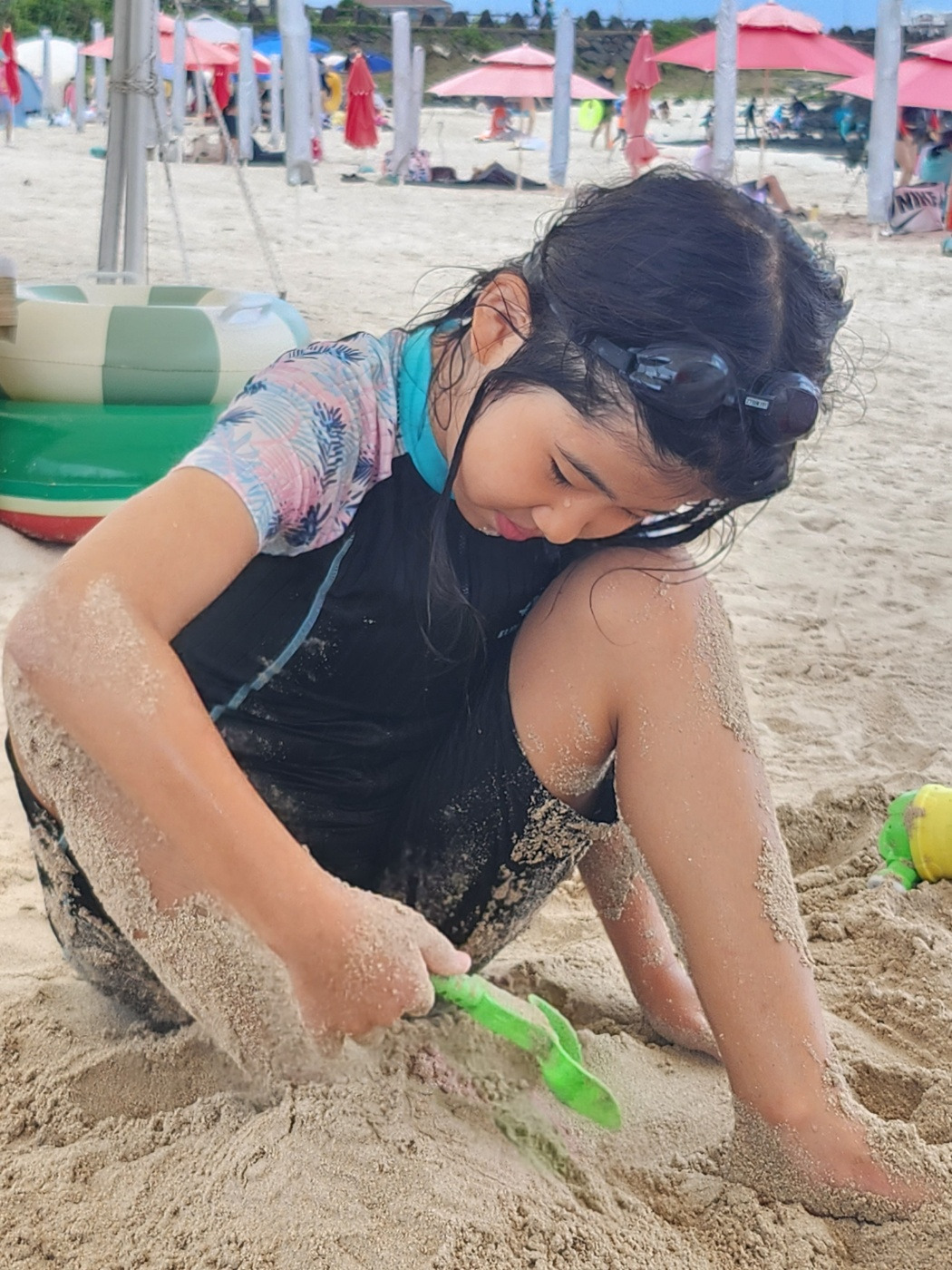 함께한 아이들은 우리 아이들 셋을 포함해 모두 7명이었다. 남자아이 3명에 여자아이 4명. 물놀이와 모래놀이를 오고 가며 정신없이 놀던 아이들. 평화롭게 어울리면 좋으련만 불화는 언제나 우리 가족으로부터 시작되었다. 첫째는 모래바닥을 파내어 물길을 만들며 놀고 있었다. 둘째도 동참해 바닷물을 날랐고, 나머지 2명의 여자아이도 함께하고 있었다. 평상 그늘 아래서 한참을 놀다 보니 다른 사람들이 오고 가는 동선을 넘어설 만큼 수로가 확장되었고, 지나가는 사람들이 무심코 첫째가 만든 모래 수로를 밟고 다녔다. 열심히 만들었지만 번번이 부서지는 수로에 속이 상한 첫째는 애먼 둘째에게 짜증을 냈다. “다 망가져 버렸잖아. 어떻게 해!” 지켜보는 엄마 역시 속상한 마음을 감출 수 없었지만 위로에 앞서 흥분을 가라앉히길 바랐다. “사람들이 모르고 그랬으니 어쩔 수 없지. 속상하겠지만 다시 만들어 봐.” 애꿎은 모래 수로에 화풀이를 하는 첫째를 바라보며, 사춘기에 접어든 첫째와 여행 중 부딪히는 문제에 대해 생각해 보지 않을 수 없었다. 물론 첫째의 불안하고 세심한 성향을 모르는 바는 아니다. 사춘기라는 시기적 특성과는 별개로 고유의 성향이 있을 테니. 그러한 성향과 시기적 특성을 차치하더라도 엄마인 나는 만 10세 6개월의 아이에게 어쩌면 많은 것을 바라고 있었는지도 모르겠다. '첫째', '언니'라는 위치의 역할에서 언제나 솔선수범을 해주길 바란 것이다. ‘엄마를 돕고, 동생들을 챙기는 언니.’ 이런 기대가 무너질 때마다 어김없이 첫째와의 갈등은 점화되었다. 다시 말해 첫째를 ‘있는 그대로’ 받아주기 너무 어렵다는 사실이었다. 설득하고, 회유하지만 뒤돌아서 한숨을 내쉰다. 첫째는 아닌 척하는 엄마의 진심을 한숨으로 느꼈으리라. 첫째는 불안을 날 선 불편으로 표현하는 아이다. 찌푸린 얼굴, 거친 숨소리, 온갖 부정적인 어휘를 사용해 현재의 불만을 가감 없이 표현한다. 부모라도 상처를 받는다. ‘우리’를 위해 온 여행이지만 첫째의 말 한마디가 비수가 되어 가슴을 후빈다. ‘누구 때문에 여길 왔는데.’ 목구멍까지 차오른다. 순한 기질의 엄마가 예민한 기질의 아이를 키울 때 마주하는 어려움은 언제나 ‘나는 안 그랬는데’라는 이해 밖의 행동들이다. 이해를 해야 소통을 하고 아이의 진심을 알 수 있는데, 이미 아이를 ‘이해’하는 첫 관문부터 막혀버리는 것이다. 아이를 키우는 일이 매 순간 어렵다고 느껴짐과 동시에 여행 속에서 마주한 첫째를 통해 겸손을 배운다.