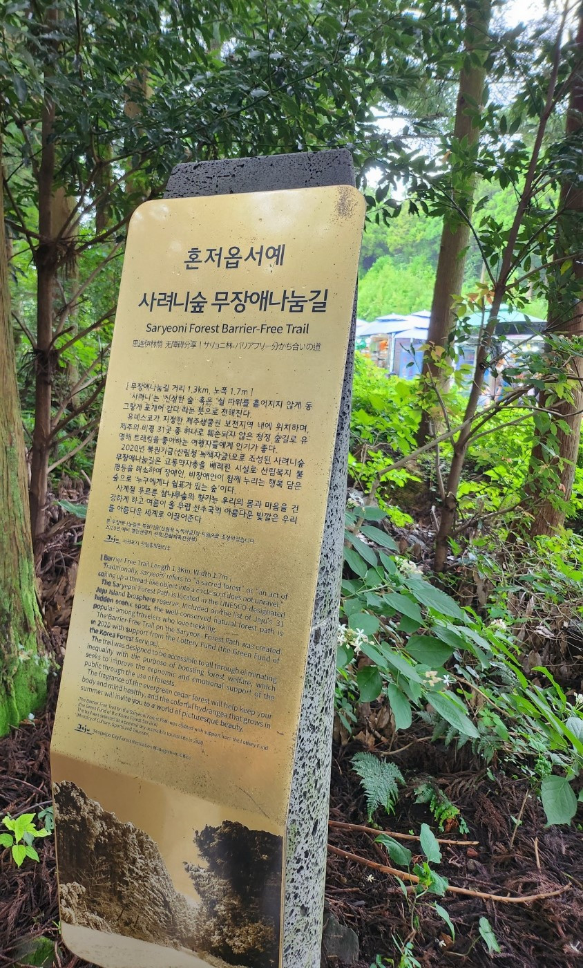 나는 아주 어릴 때부터 바다보다 산이 좋았다. 평야 지대에서 살았기에 가족과 함께 철마다 바다로 산으로 놀러 다녔다. 어쩐지 격포 해수욕장보다 부안 내소사 가는 길이 좋았고, 대천 해수욕장보다 진안 마이산 가는 길이 더 좋았다. 계절마다 변하는 산의 모습이 신기했고, 볼거리가 많은 산에 더 마음이 끌렸다. 더욱이 한없이 이어지는 바다보다 시작과 끝이 있고 사랑하는 사람의 가슴처럼 따뜻하게 품어주는 산이 더 좋았다. 아이들이 이런 산과 숲의 매력을 느꼈으면 하는 바람으로 함께한 사려니숲길이 었다. 비록 첫째에게 핀잔 아닌 핀잔을 들었던 일정이지만 훗날 엄마만큼 나이가 들어서 이 순간의 기분 좋은 추억을 잊지 않길 바라본다.