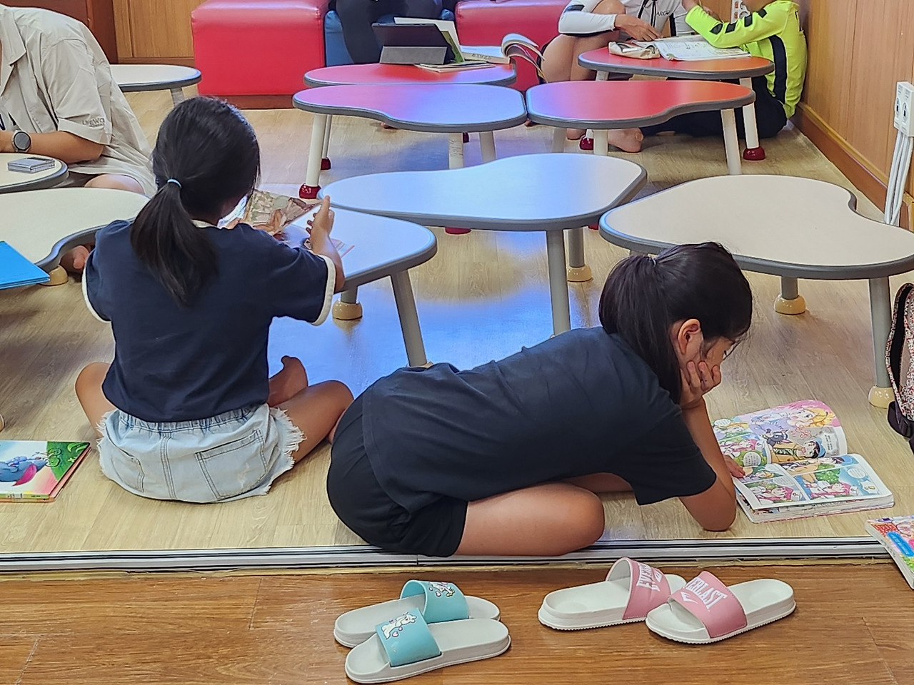우리 가족은 열흘이 가까운 시간 동안 함덕과 김녕을 오고 가며 여행을 즐겨왔다. 이번에는 더 동부로 향하여 여행을 떠나보기로 했다. 우리가 향한 여행지는 세화 해수욕장. 물놀이는 할 수 없는터라 세화 해수욕장 주변에서 즐길 거리를 만끽하기로 했다. 여전히 날씨는 무더웠지만 하루가 귀하기에 여행을 서두르지 않을 수 없었다. 가장 먼저 향한 곳은 ‘동녘 도서관(제주 제주시 구좌읍 일주동로 3148)’ ‘한라 도서관’과 달리 제주 교육청 관할 소속 도서관이라 또 다른 재미를 느낄 수 있을 것 같아 한껏 부푼 마음을 안고 숙소에서 출발하였다. 어린이 자료실은 생각보다 아담하였다. 신발을 벗고 입장할 수 있는 곳이라 셋째의 유아차를 문 앞에 두고 어린이 자료실로 들어섰다. 제주도와 관련된 도서를 빌리기 위해 잠시 셋째를 자료실 바닥에 눕히고 정신없이 책을 찾으러 다녔다. 한참을 찾고 있던 도중, 사서 선생님께서 내게 와 이야기했다. "선생님, 저희 도서관 방침상 누워서 책을 볼 수는 없습니다. 양해 부탁드립니다." 멋쩍고 당황했지만 ‘저희 아이가 장애가 있어요’라는 말이 차마 입 밖에서 떨어지질 않았다. 죄송하다 말하며 급하게 셋째를 데리고 어린이 자료실 밖으로 나왔다. 덥고 습한 탓일까. 셋째가 유아차에서 불편을 호소했다. 도서관이기에 셋째의 울음소리를 방관할 수 없었고, 열심히 책을 보던 첫째와 둘째를 불러 빌릴 책을 골라서 서둘러 도서관을 나섰다.