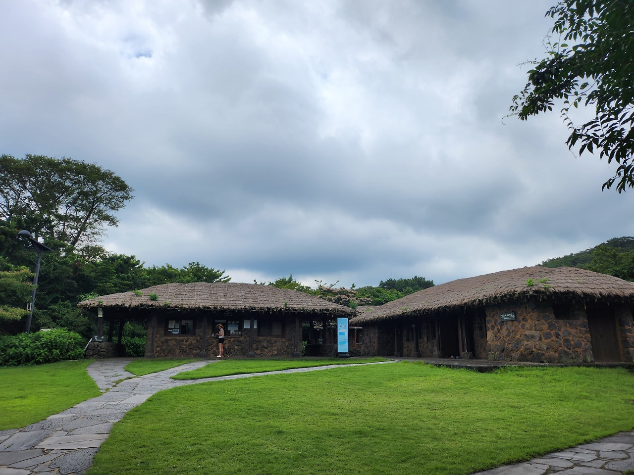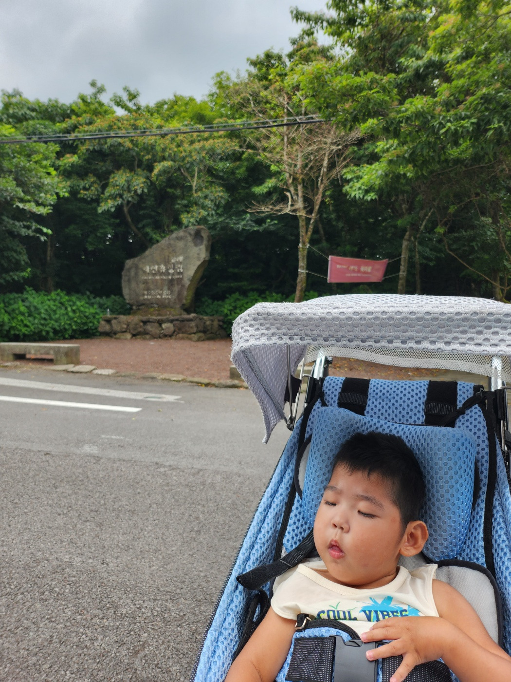 유아차를 펴서 셋째를 앉히고 우리는 매표소로 향했다. 제주 전통 가옥을 개조한 매표소였다. 그리고는 직원에게 물었다. “유아차를 끌고 들어갈 수 있나요?” “아니요. 가시려면 '교래생태체험관'(검색 정보가 애매한 이유가 여기에 있었던 것 같다.) 정도 가능하신데, 오늘 쉬는 날이에요.” “아, 그래요? 그럼 그냥 이 주변만 돌아봐도 될까요?” “네. 그러세요. 그런데 다니기 불편하실 거예요.” “네. 알겠습니다.” 나와 직원은 몇 마디 말과 옅은 미소를 주고받은 뒤 매표소 뒤쪽을 향해 걸어갔다. 갈 수 있는 곳까지 가보자고 생각했다. 여기까지 왔는데 그냥 가는 건 너무 아쉬워 교래 곶자왈의 기분만 즐기자며 선택한 대안이었다. 구름도 가득하고, 큰 나무가 드리워 숲은 그리 덥지 않았다. 다만 나무가 없는 곳을 마주하거나 습해서 오래 걸을 수 없는 상황이었다. 최대한 갈 수 있는 곳곳을 돌아다닌 뒤, 우리는 주차장으로 발길을 돌렸다.