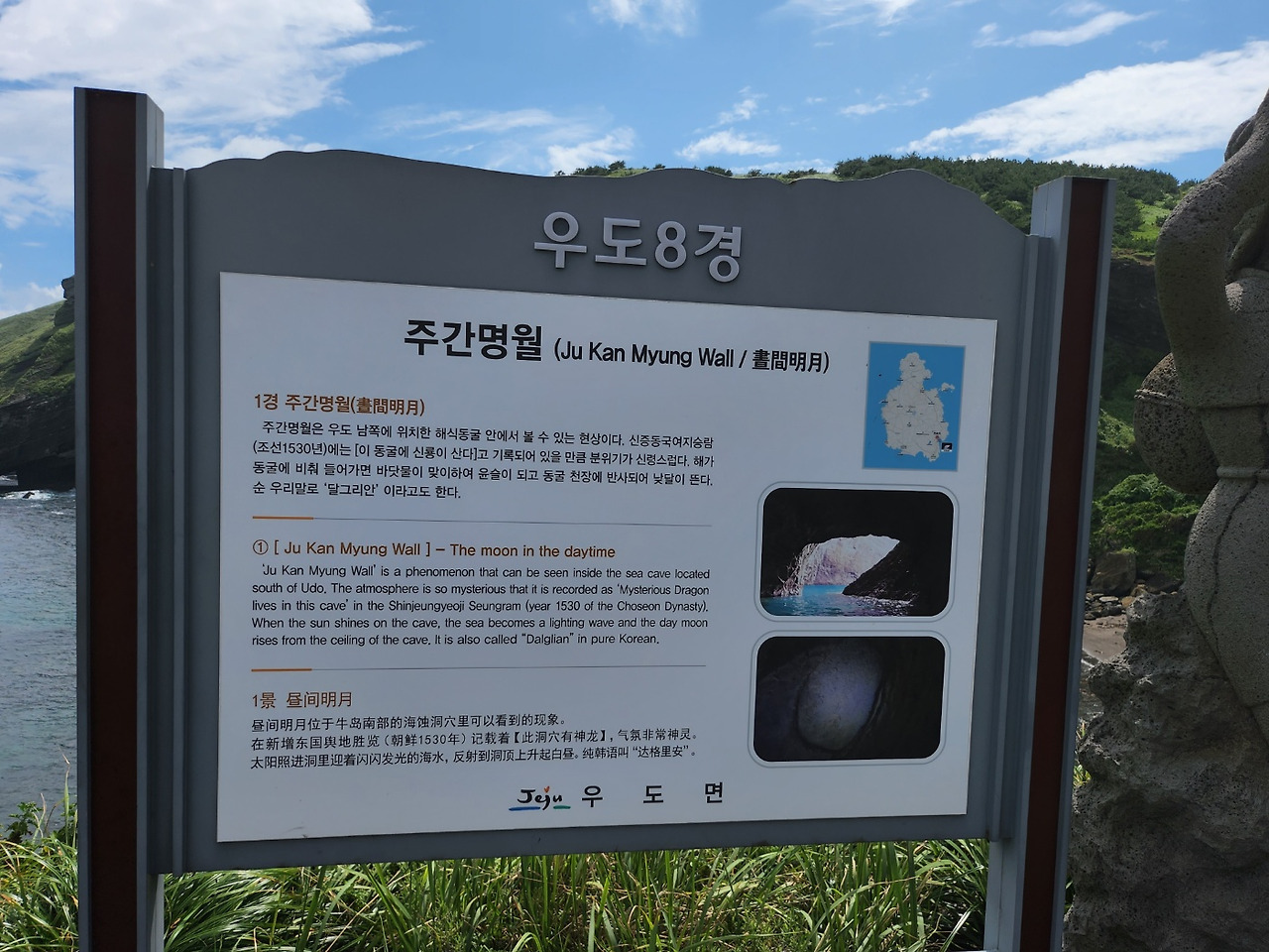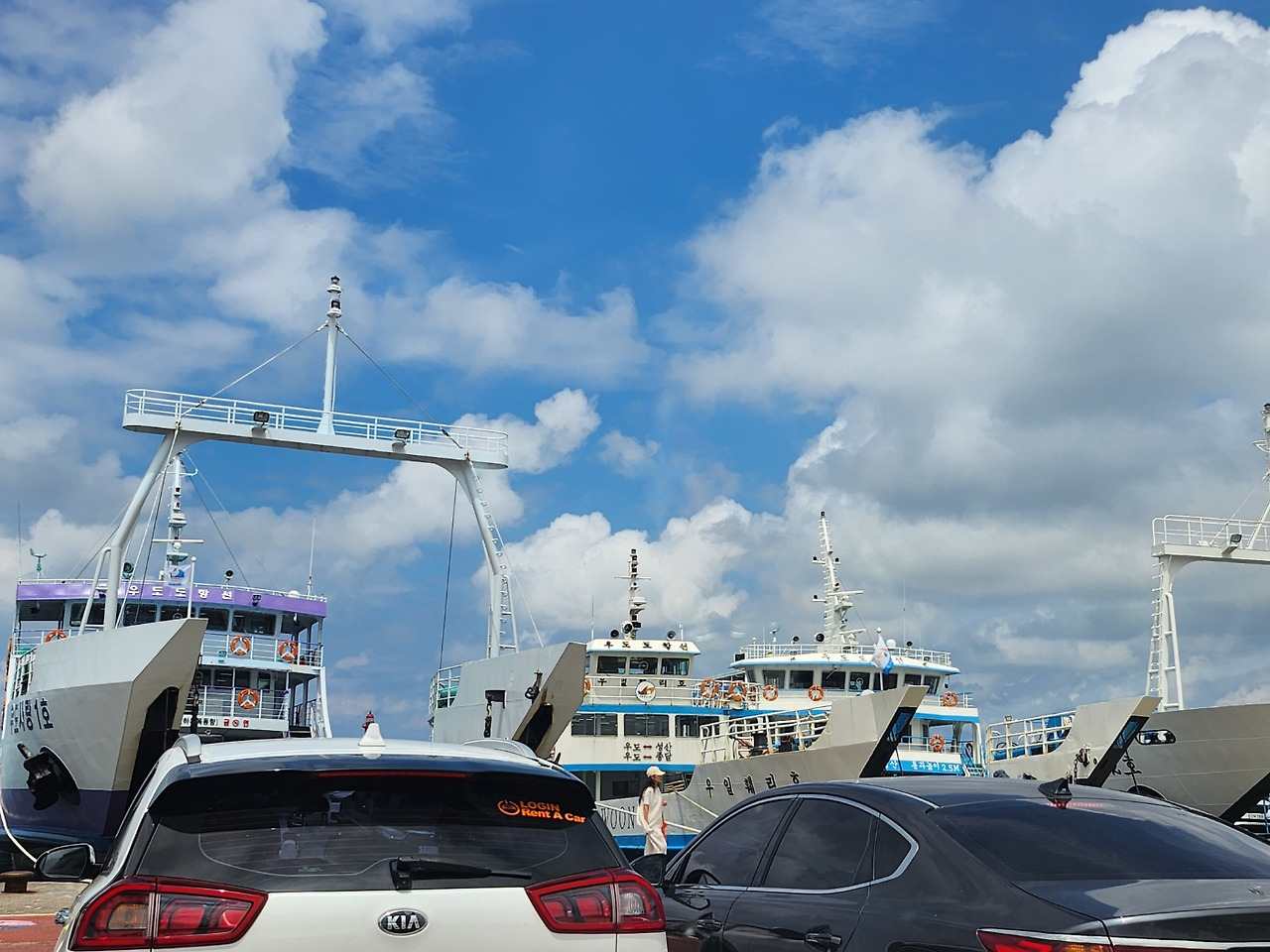 제주로 여행을 자주 다닌 편은 아니었지만, 제주를 떠올리며 늘 꿈꾸던 곳이 있었다. 바로 ‘우도(제주 제주시 우도면)’. 제주를 다녀온 많은 사람이 모두 입을 모아 이야기하던 곳이었다. ‘도대체 얼마나 아름다운 섬이길래 이리도 극찬 일색일까. 한 달 살이를 하면 반드시 다녀오겠노라’ 마음먹었다. 그리하여 오늘, 친정엄마(이하 엄마)와 엄마 친구분(이하 이모)과 함께 우도에 가기로 했다. 엄마도, 이모도 모두 처음 가는 우도였기에 가기 전, 만반의 준비가 필요했다. 숙소에서 성산항까지 가는 방법과 제주 섬에서 우도 섬으로 이동하는 방법, 다시 제주 섬으로 돌아오는 법까지 철저한 정보 수집을 마쳤다. 일단 여유롭게 아침을 맞이했다. 아침 겸 점심으로 간단히 식사를 마치고, 항구에서 오후 1시 출발을 목표로 숙소에서 우도로 갈 수 있는 성산포항(제주 서귀포시 성산읍 성산등용로 112-7)으로 향했다. 숙소에서 성산포항까지 가는 데만 30여분의 시간이 소요되기에 우리는 설렘 반, 떨림 반의 마음을 안고 부지런히 숙소를 나섰다. 우도에 가는 방법은 두 가지인데 배에 자차를 싣고 가는 방법과 자차는 성산포항에 주차해 두고 가는 두 가지 방법이 있다. 우리는 셋째가 있기 때문에 고민 없이 차량을 승선하기로 했다. 일단 차량에 탑승하면 에어컨은 켤 수가 없다. 우리는 할 수 없이 창문을 모두 열고 바닷바람을 쐬며 가기로 했다. 다행히 차량 위로 그늘막이 될 수 있는 천장이 있었다. 나머지 가족들은 바다를 보기 위해 여객선 2층으로 올라갔으며, 나와 셋째만 차량에 남은 채 이동했다. 처음 가는 길이라 긴장을 한 탓인지 배가 움직이자마자 노곤하게 잠이 쏟아졌다. 잠시 눈을 붙였을까. 배 위에 있던 가족들이 얼마 지나지 않아 차량이 있는 곳으로 내려왔다. 벌써 도착했다는 것이다. 15분여 정도 지났을 시간이었다. 그렇게 우리는 고대하던 우도에 도착했다. 도착한 우도의 항구는 우도천진항(제주 제주시 우도면 연평리 1737-15). 차를 타고 배에서 내리면 그렇게도 기다리던 우도에 발을 내딛는다. 길도 알지 못하면서 내비게이션만을 믿고 호기롭게 운전대를 잡았다. 간단한 아침 겸 점심을 먹고 떠난 터라 일단 가까운 마트에 가서 음료와 물을 사 목을 축이기로 했다. 이모가 아이들을 데리고 하나로마트(제주 제주시 우도면 우도로 143)에 다녀왔는데 이것저것 주전부리가 될 만한 것들을 잔뜩 사 오셨다. 아이들은 음료와 과자를 먹으며 우도에서 가장 유명한 ‘검멀레 해수욕장(제주 제주시 우도면 연평리)’으로 향했다. 다행히 주차할 공간이 마련되어 있어 차에서 내려 검멀레 해수욕장 쪽으로 걸어갈 수 있었다. 우도에 발을 내딛는 순간 숨 막히는 더위에 몸 둘 바를 몰랐다. 유난히 덥게 느껴졌다. 한 걸음 한 걸음 내딛을 때마다 숨이 턱턱 막히는 느낌이랄까. 하지만 해변 앞으로 우도 8경 중 1 경인 주간명월과 7 경인 동안경굴을 멀리서 바라볼 수 있었다. 이 절경을 보기 위해 우도에 왔구나 싶을 만큼 경이로웠고, 바다의 윤슬은 찬란했다. ‘이 아름다운 자연의 신비로움을 남편과 함께 했더라면 얼마나 좋았을까.’ 아쉬운 마음과 함께 다음 제주 여행에는 꼭 같이 오리라 다짐했다. 그렇게 한참을 서서 넋을 놓고 바라보았다. 다행히 길가에 늘어서있던 상가 건물 덕분에 따사로운 햇볕은 간신히 피할 수 있었다. 후덥 한 더위였지만 그늘 덕분에 자연이 주는 선물을 만끽할 수 있었던 것이다.