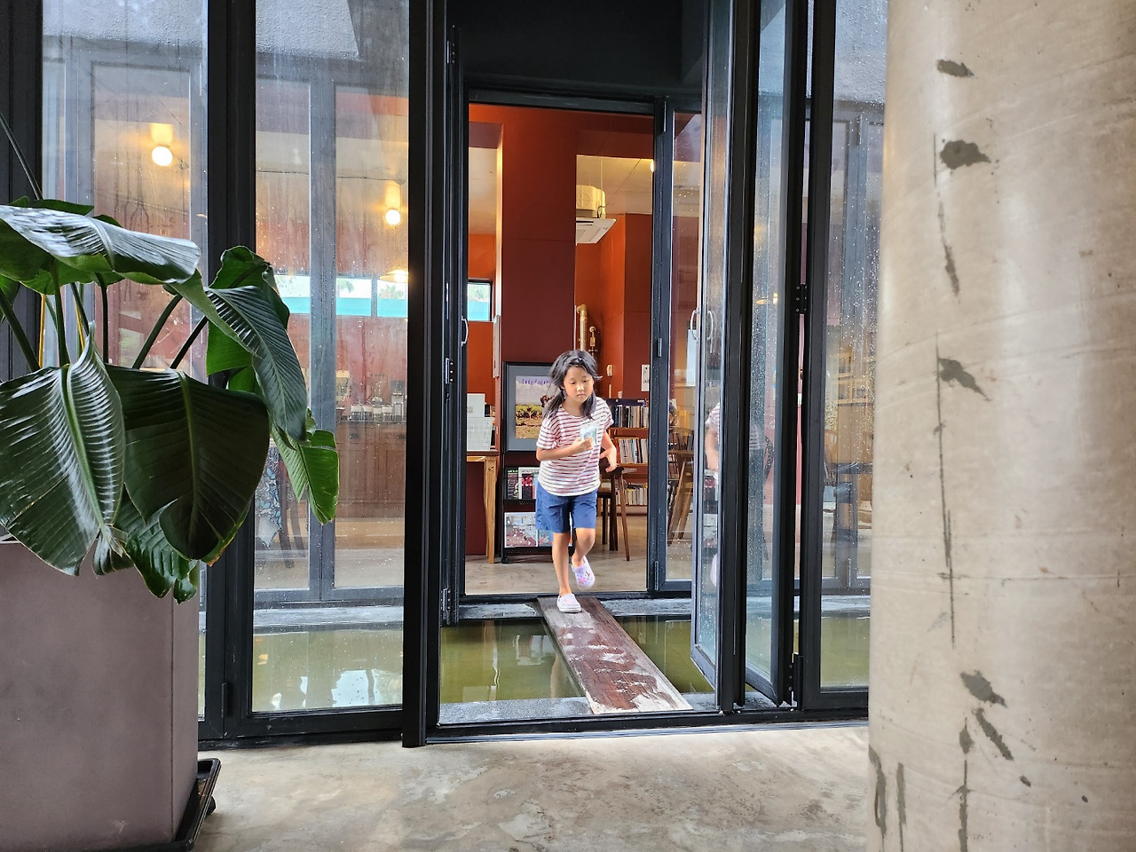 생각보다 책이 많지 않아(대체로 영화 관련 서적) 음료가 나오자마자 자리로 돌아갔다. 우리 가족뿐인 커피숍에 시원한 에어컨 바람과 달달한 바닐라 라테까지. 쇠소깍의 아쉬움이 단번에 사라지진 않았지만 나름 나쁘지 않은 선택이라고 생각했다. 하지만 둘째가 음료가 나오자마자 얼마 지나지 않아 집에 가자고 조르기 시작했다. “엄마, 빨리 집에 가자.” “이제 음료 나왔으니까 이것만 먹고 가자.” “싫어. 나 여기 있기 싫어.” 그럴 수 없는 상황임에도 끊임없이 징징거리며 안 그래도 우중 일정을 소화하기가 벅찼던 나를 자극하고야 말았다. “지금 음료가 나왔는데 어떻게 바로 가. 먹고 가야지. 힘든 것은 알겠는데, 조금만 기다려줘.”라고 화도 내고 달래도 보았지만 소용이 없었다. 카페 안에 사람도 없겠다, 훈육의 시간이 찾아온 것이다. 아주 격렬하진 않았지만 엄마인 나는 짜증으로, 둘째는 보챔으로 서로의 감정을 나누다가 결국 둘째가 피곤하고 힘들어서 더 그랬던 것으로 결론을 내리고 부지런히 먹고 자리에서 일어나기로 했다.