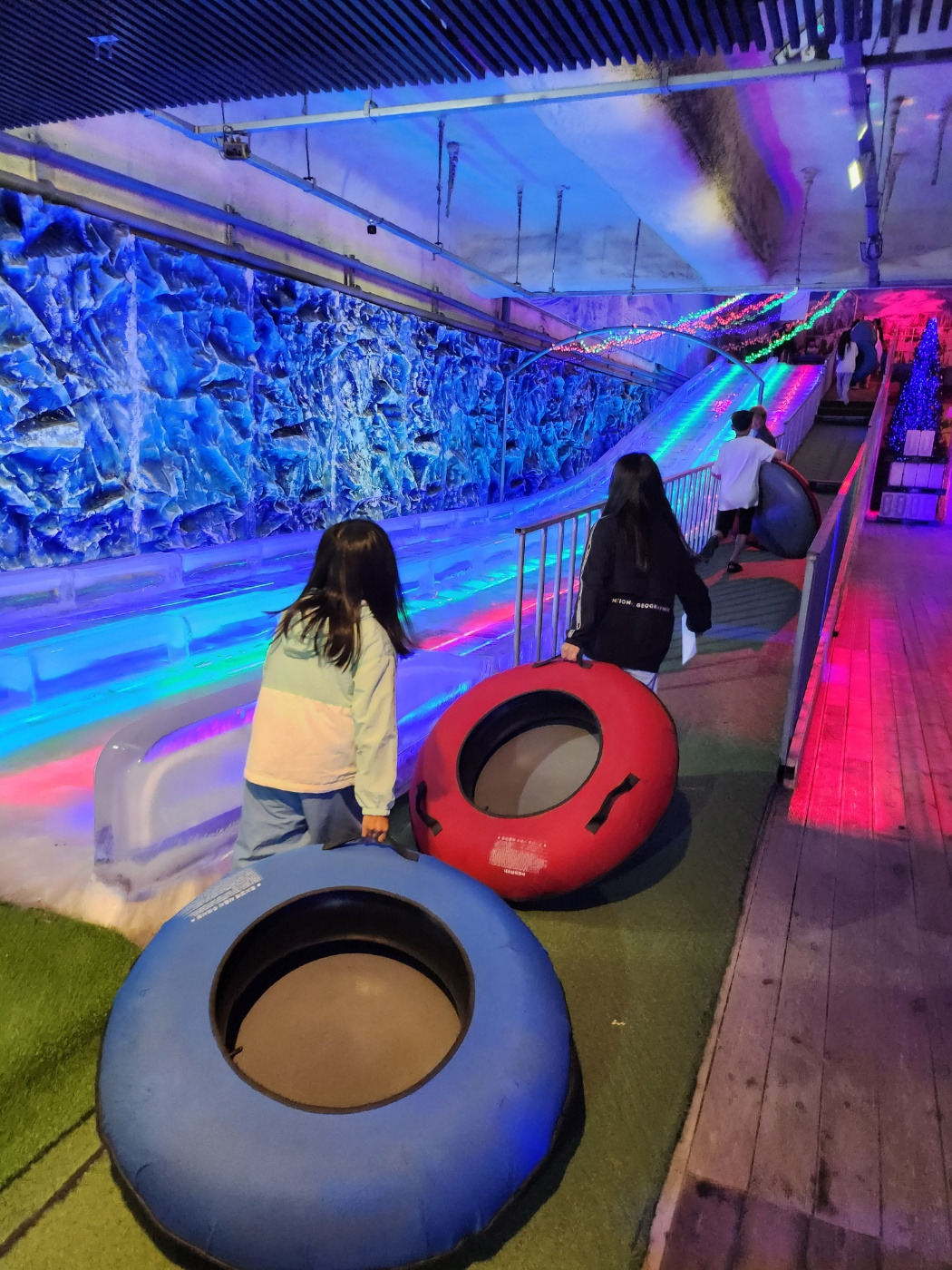우리는 아이스 뮤지엄, 3D 착시 아트, 5D 상영관, VR 1회를 모두 체험할 수 있는 일반 요금으로 결제 후 입장했다. 가장 먼저 체험한 것은 ‘아이스 뮤지엄’, 얼음 썰매를 타는 곳이었다. ‘한여름에 찾아갔기에 시원함을 만끽할 수 있겠구나.’ 싶었는데 입장하자마자 몇 걸음도 채 걷지 않아 추위에 옴짝달싹 할 수가 없었다. 큰 아이들도 걱정이지만 셋째가 더 걱정이었다.(감기에 걸리면 장 상태가 안 좋아지고, 결국 경기(경련)할 확률이 높아진다.) 일단 전시된 얼음 조각들을 빠르게 구경하고, 셋째와 나는 밖으로 나왔다. 로비에서 기다리는 동안 큰 아이들은 얼음 썰매를 타기로 했다. 두세 번 탔을까. 나름 바람막이를 챙겨 입었던 아이들이지만 살얼음 추위 때문에 더 이상 타지 못하고 다음 체험으로 넘어가기로 했다. 다음 체험은 VR. 큰 아이들 둘이 앉아 체험했는데 길지 앉은 시간 동안 단 1회라 아쉬움이 컸다. 아쉬움을 달래기 위해 우리는 곧바로 초콜릿 만들기 체험을 위한 공간으로 이동했다. 일반 요금에 포함되지 않았기에 따로 결제하고 체험하기로 했다. 좋아하는 초콜릿을 만든다고 하니 한껏 들뜬 큰 아이들. 체험하기 위해 설레는 마음으로 앉아 있는 모습을 보니 돈을 따로 내고서라도 오길 잘했다는 생각이 들었다. 셋째 수유시간도 됐고, 큰 아이들이 체험하는 동안 수유를 해야겠다는 생각에 우왕좌왕 돌아다니는데 둘째가 낯설고 어색한지 나를 찾는다. "엄마, 이리 와."“둘째야, 언니랑 하고 있어. 엄마 셋째 수유하면서 보고 있을게.” 하지만 둘째는 어제 혼난탓인지 자꾸 엄마를 찾는다. 셋째 수유도 해야 하고, 큰 아이들 체험도 봐줘야 하고, 몸이 열 개라도 모자랄 지경이었다.