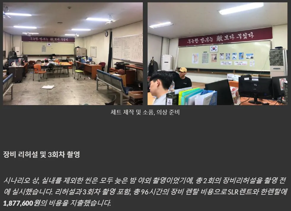 또한 실제 군 부대를 방불케 하는 생활관은 모두 영화 촬영을 위해 제작된 세트다. 한 달 동안 침상을 직접 만들고 관물대를 설치하는 노력 끝에 생활관의 공기까지 재현한 듯한 세트가 만들어졌다. 그밖에 보급품과 피복을 따로 구매하고 안전한 모형 총기를 제작하는 등 세세한 소품까지 디테일을 챙긴 것을 확인할 수 있다.