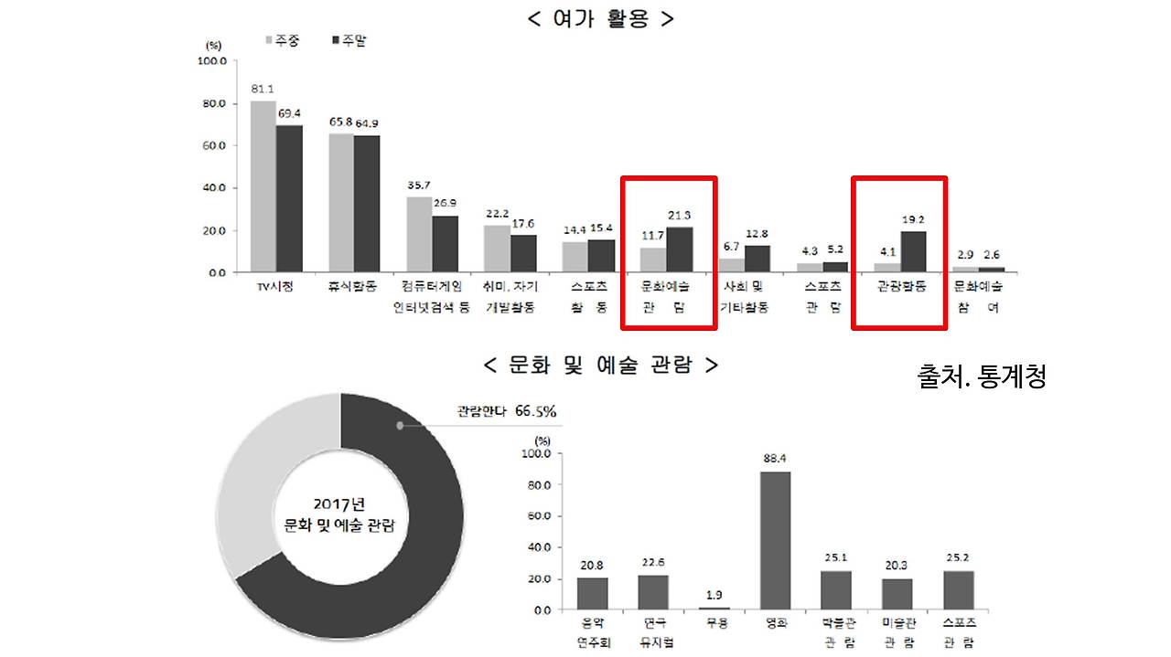 반면, 여행과 영화관람은 시간이라는 비용에서 자유로워지는 주말에 상승한다. 때문에 다른 여가활동에 비해 이 둘은 그 자체에 대한 욕구가 강한다는 걸 알 수 있다. 그리고 두 여가 모두 경험에 특화된 여가다. 따라서 주말처럼 여가를 보다 자유롭게 선택할 수 있는 환경이라면 경쟁 여가는 여행과 영화관람이지, TV시청이 아니다.
