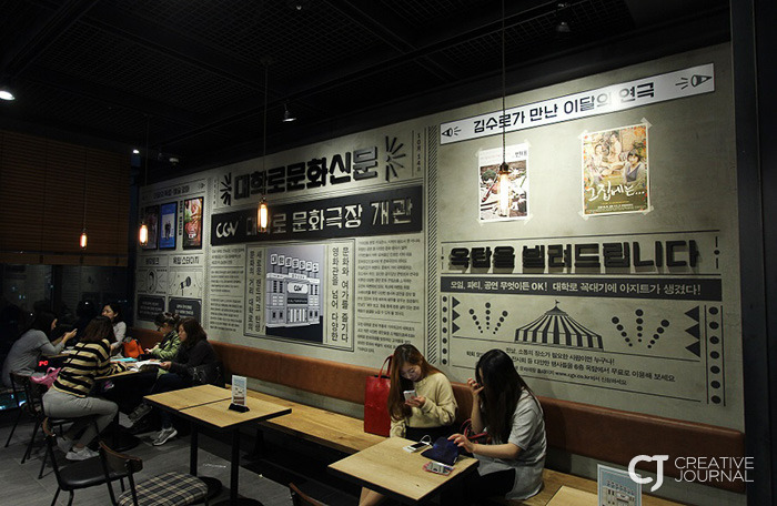 CGV 대학로는 연극, 버스킹 등 여러 문화콘텐츠가 한 데 어우러져 하나의 큰 문화극장으로서 역할을 하던 대학로를 반영했다. 사진에서 보듯이 대학로의 역사와 문화를 한눈에 볼 수 있도록 공간을 구성했다고 한다. 마지막으로 CGV 하계는 아이를 동반한 가족 단위 관람객이 많다고 한다. 때문에 아이 놀이방은 물론, 아이 전용 좌석 상영관이 있다고 한다. 이처럼 CGV의 컬처플렉스는 각 지역의 정체성 혹은 관람객에 특성을 고려한 공간으로 디자인됐다.