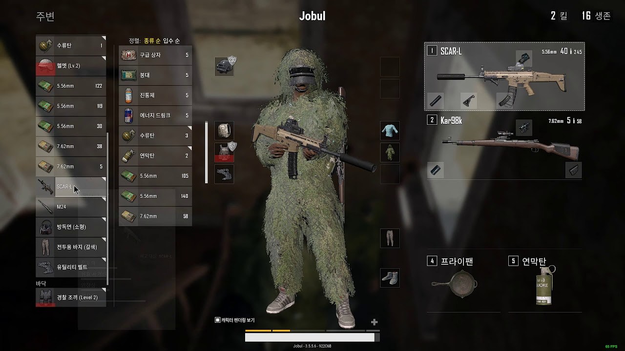 진짜다. 물론 플레이어는 다르지만 같은 게임이다. 오른쪽 같은 상태가 되려면, 소위 '파밍'이 필요하다. 파밍은 farming에서 유래된 말로, 게임에서 돈이나 아이템을 수집하는 행위를 말한다. 뚝배기로 불리는 머리 방어구 헬멧부터, 몸통 방어구 조끼, 각종 총에 맞는 소음기와 대용량 탄창 등 다양한 파츠들, 피 관리를 위한 구급상자, 에너지 드링크, 진통제. 이건 시작이다. 방어구와 파츠는 저마다 레벨이 존재해서 같은 종류의 파츠라도 상위의 파츠가 존재한다. 특히 방어구는 내구도도 있으며, 인게임 속 이동수단인 차량에도 내구도가 있고 내구도와 별개로 연료가 존재한다.