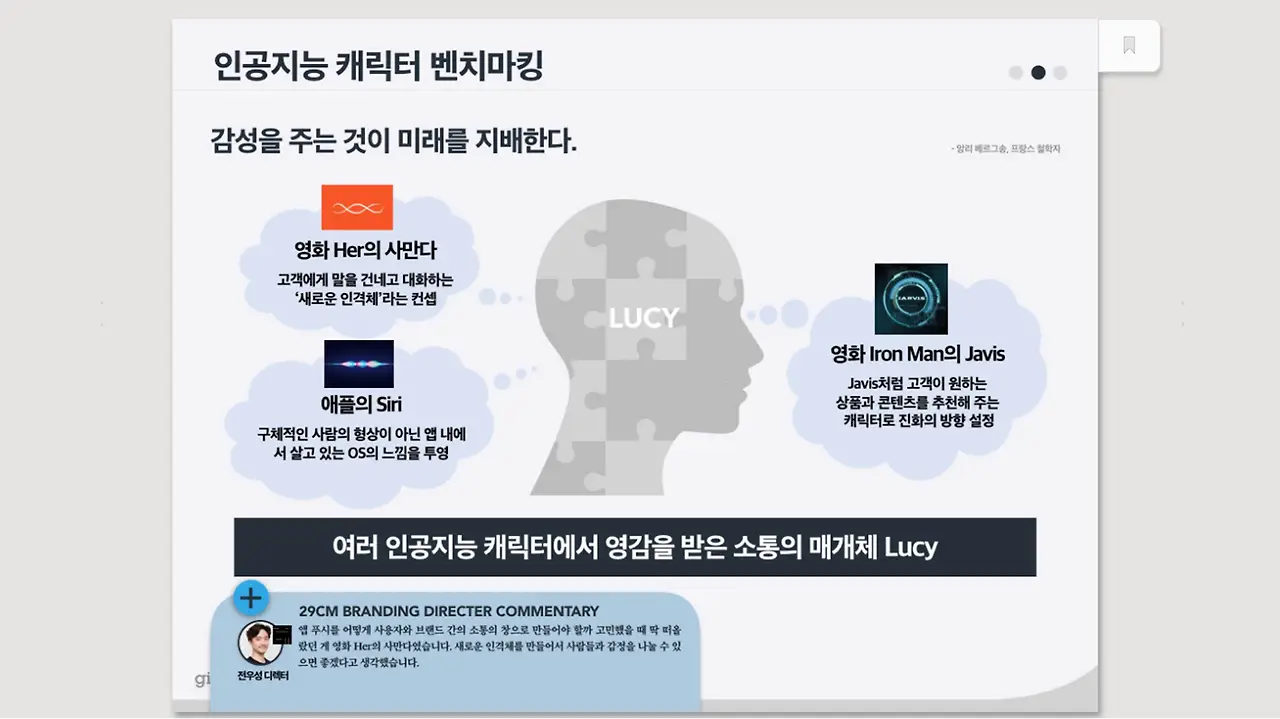 과거 페르소나 마케팅은 존재했습니다. 사람들에겐 페르소나보단 단순히 시각, 청각처럼 평면적인 감각에 불과했습니다. 이젠 달라질 것입니다. AI챗봇을 통해 보다 사람처럼 상호 커뮤니케이션이 가능해질 것이며, XR을 통해 평면 이미지가 아닌 입체적인 사람의 형상을 가질 수 있게 될 것입니다. 또 AI스피커를 통해 텍스트가 아닌 보이스로 사람들에게 다가올 것입니다. 즉, 사람 같은 사람 아닌 사람인 듯 페르소나 마케팅이 진행될 듯 보입니다. 아이언맨의 자비스처럼 앞으로 진행될 브랜드들의 각양각색 페르소나가 기대됩니다.