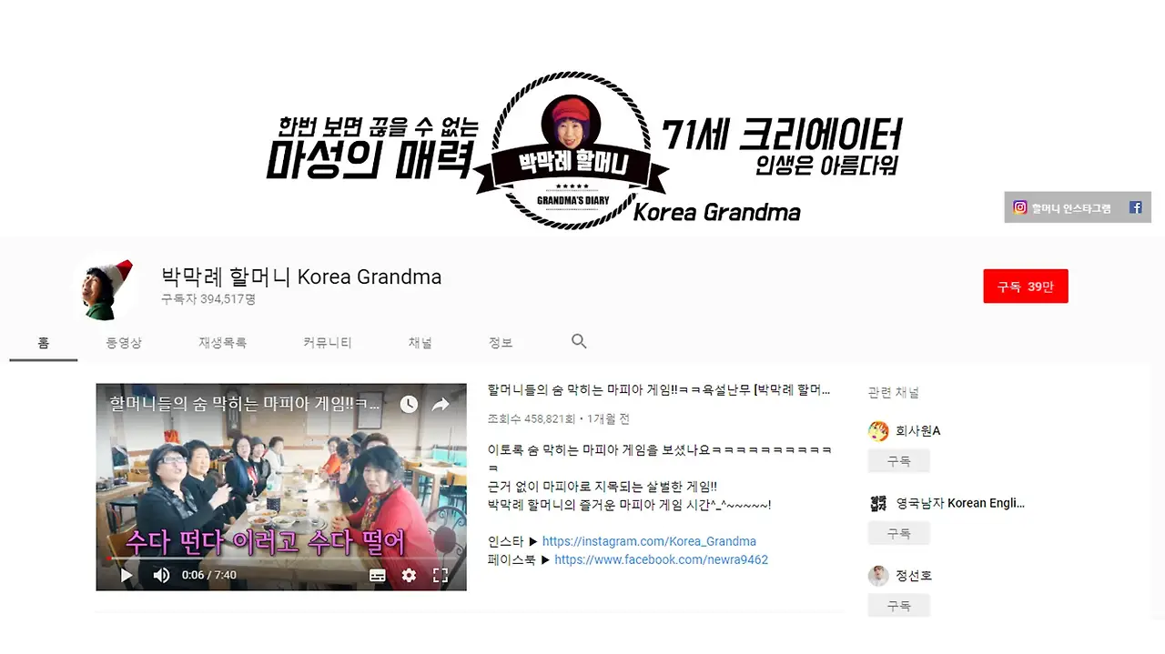 바로 korea grandma, 71세 할머니 크리에이터, 박막례 할머니입니다.