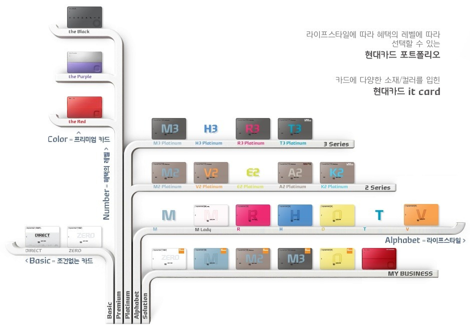 정태영 사장이 부임한 이후, 현대카드의 가장 큰 변화는 카드 라인업이었다. 지금도 많은 카드사들이 그렇지만, 빅데이터를 바탕으로 고객의 라이프스타일을 분석해 최적의 혜택을 제공하려고 노력한다. 하지만 그는 빅데이터 속에서 다른 걸 봤다. 하나는 모든 라이프스타일은 두 가지로 구분 지을 수 있다는 것이다. 바로 1) 혜택을 더하거나 2) 비용을 뺀다는 것이다. 때문에 그는 무성한 나뭇가지처럼 보였던 현대카드 라인업을 대폭 줄였다. 프리미엄 - 포인트 - 할인으로 말이다. 여기서 멈췄다면, 연말 지자체 보도블록 공사처럼 생색내기 위한 처사에 지나지 않았을 것이다.