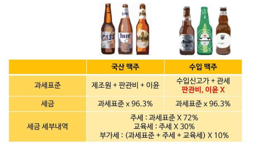수입맥주의 부상에 가장 큰 원동력은 저렴한 가격에 있다. 편의점에서 1년 내내 4캔에 만원을 한지도 수년이 됐다. 이렇게 저렴한 가격 정책을 펼 수 있는 건 과세기준이 국산 맥주와 다르기 때문이다. 판관비와 이윤이 과세 공식에 들어가지 않기에 그만한 액수를 할인할 수 있는 것이다. 하지만 수입맥주 부상의 주된 요인이 저렴한 가격 때문만은 아니다.