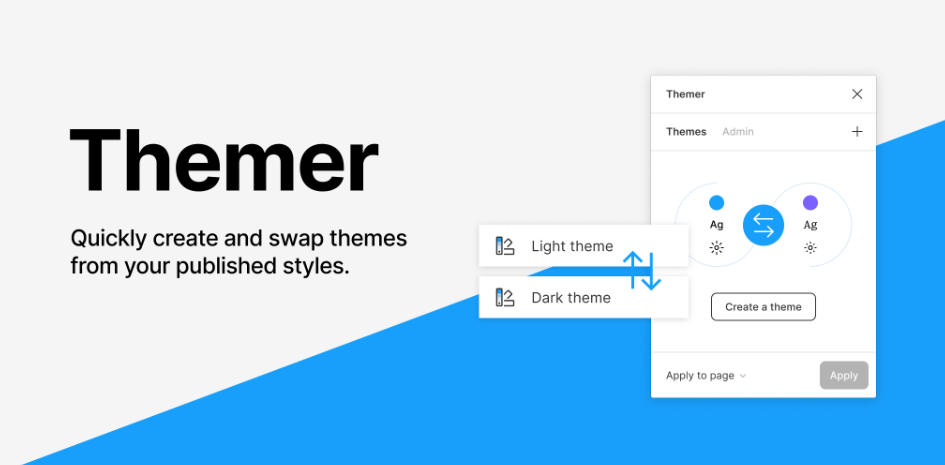 페어링을 정확히 지정했다면 굳이 라이트 모드와 다크 모드를 따로 작업할 필요가 없다. 둘 중 한쪽 테마로만 작업을 하고 페어링된 컬러로 스위칭만 하면 되기 때문이다. 그래서 한쪽으로 작업하고 한 번에 스위칭할 수 있는 플러그인을 찾았다. Themer라는 플러그인이다.
