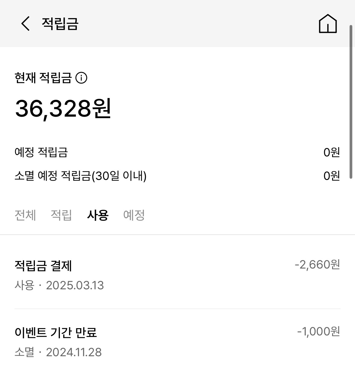 "사용" 탭에서 사용, 소멸을 같이 두니까, “너에게 선택권을 줄게. 적립금이 소멸된 것도 너의 선택이야!"라고 사용자한테 말하는 거 같다.