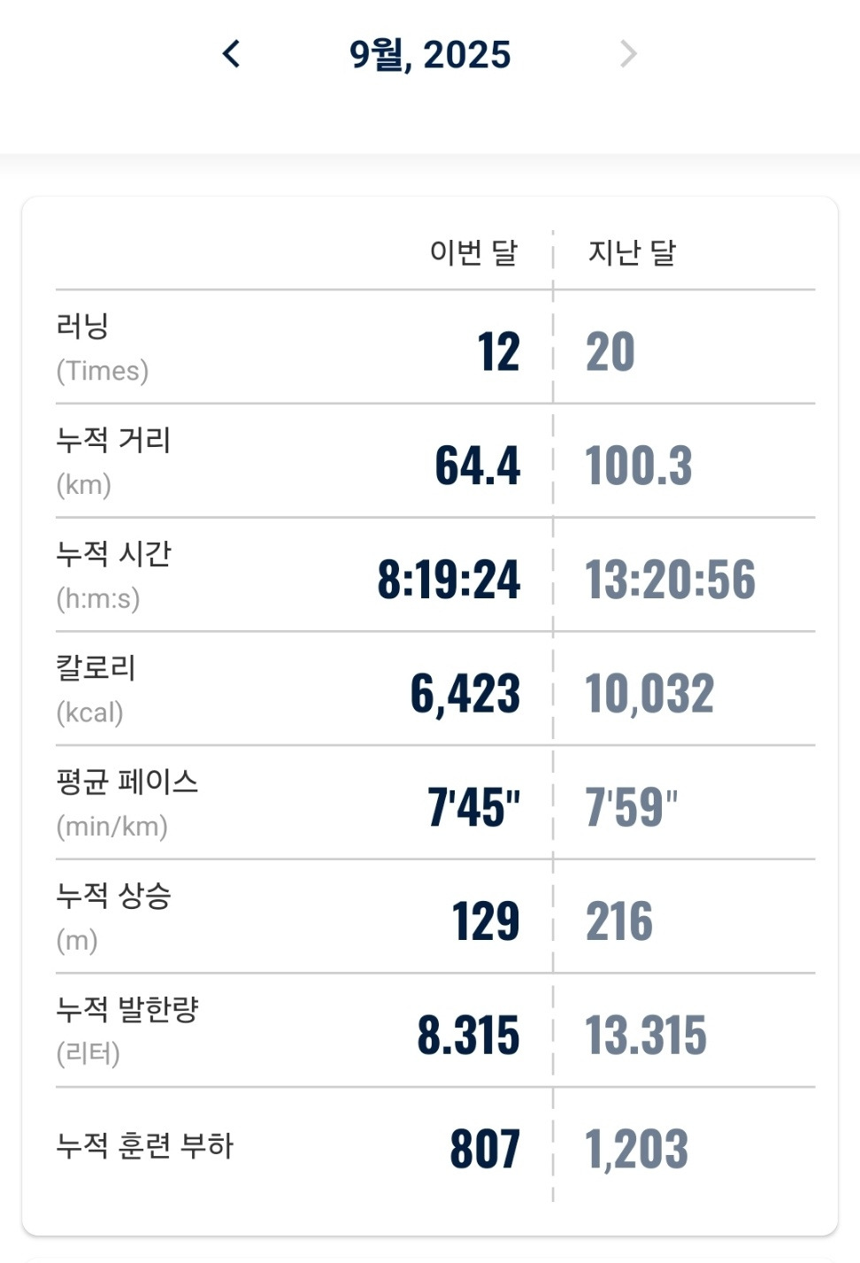 달리기 횟수도 한참 부족하고, 총 달리기 시간, 월 마일리지 역시 한참 부족합니다.