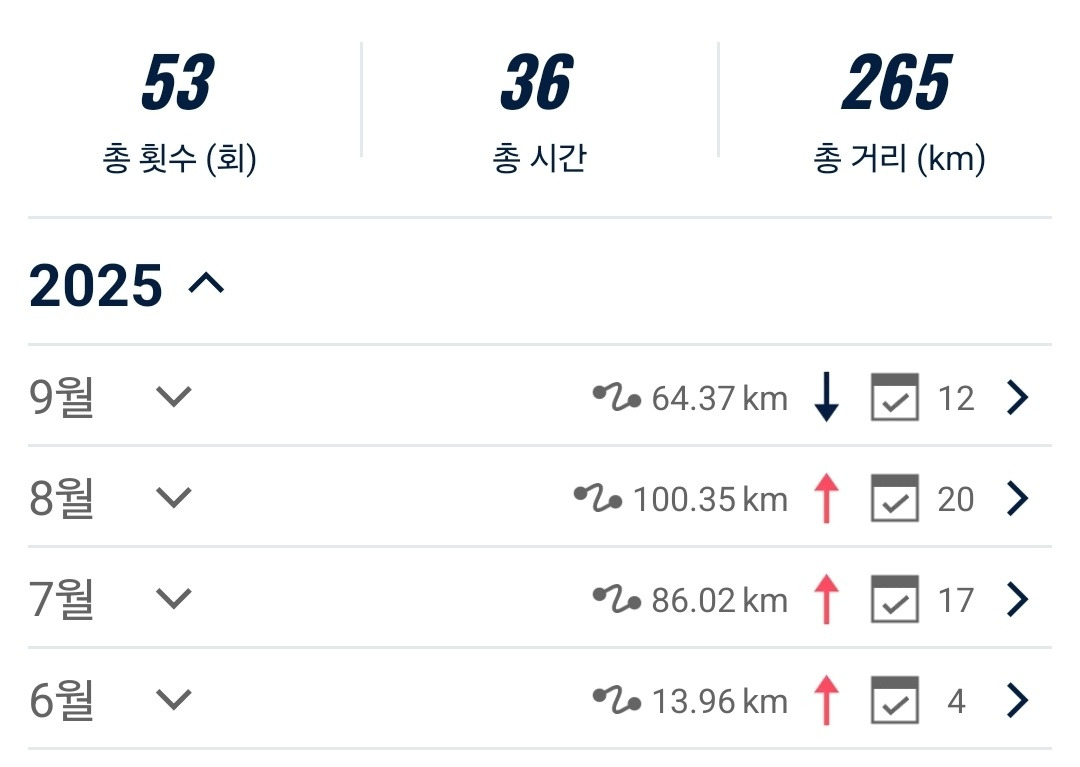 매월초가 되면 그달의 달리기 목표를 세웠었는데 신기하게도 9월은 목표를 세우지 않았었습니다.