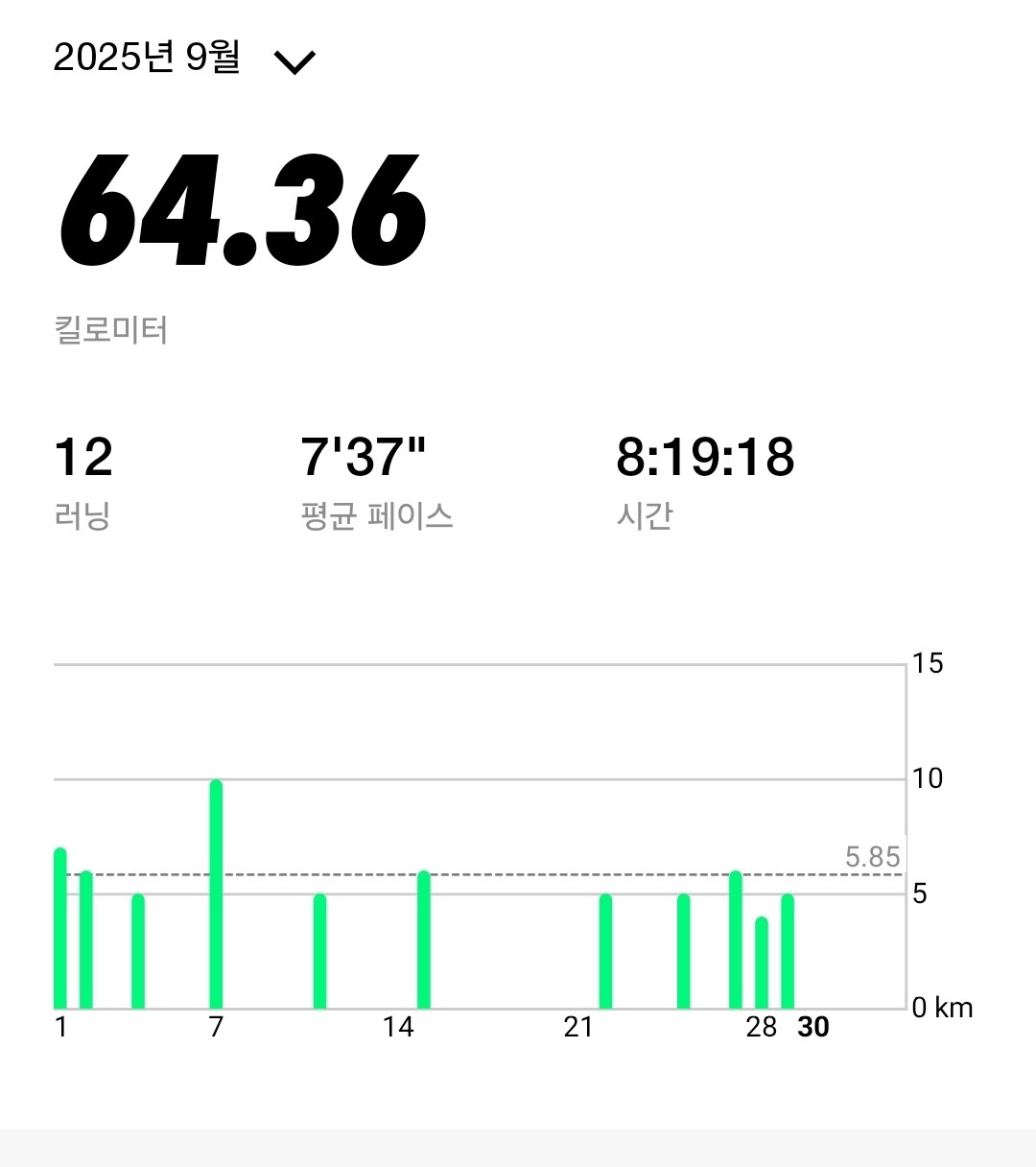 이번 달은 총 64km를 달렸습니다.