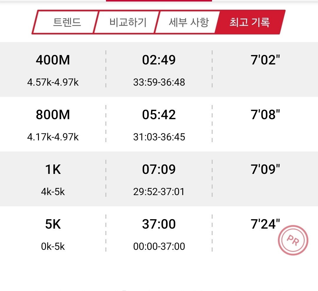 바로 어제 5km pb를 갱신했습니다.