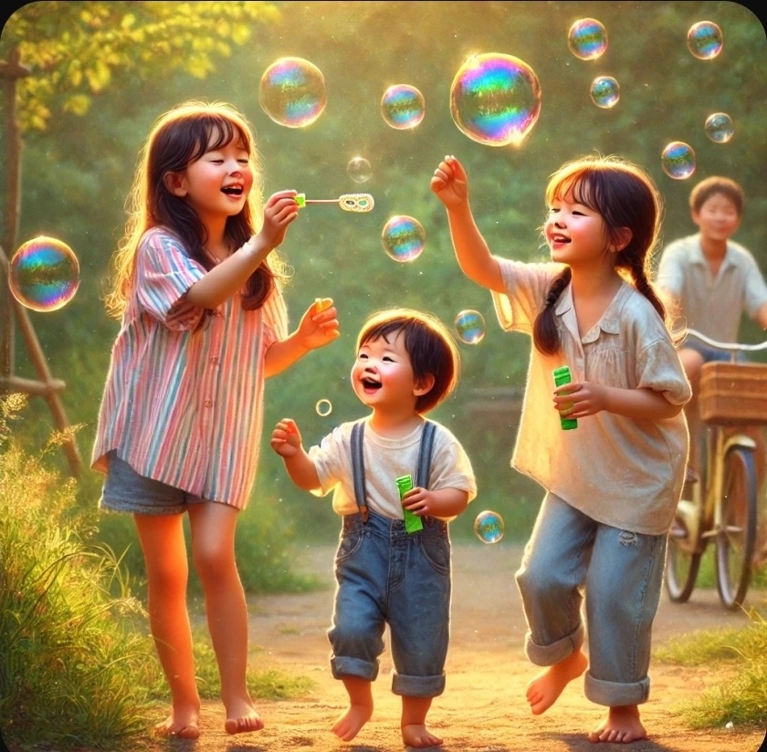 "엄마, 비눗방울은 하늘로 가서 잘 살겠지? 내가 만든 방울이 거기 잘 있나 꼬부랑 할머니가 되면 가서 볼게."