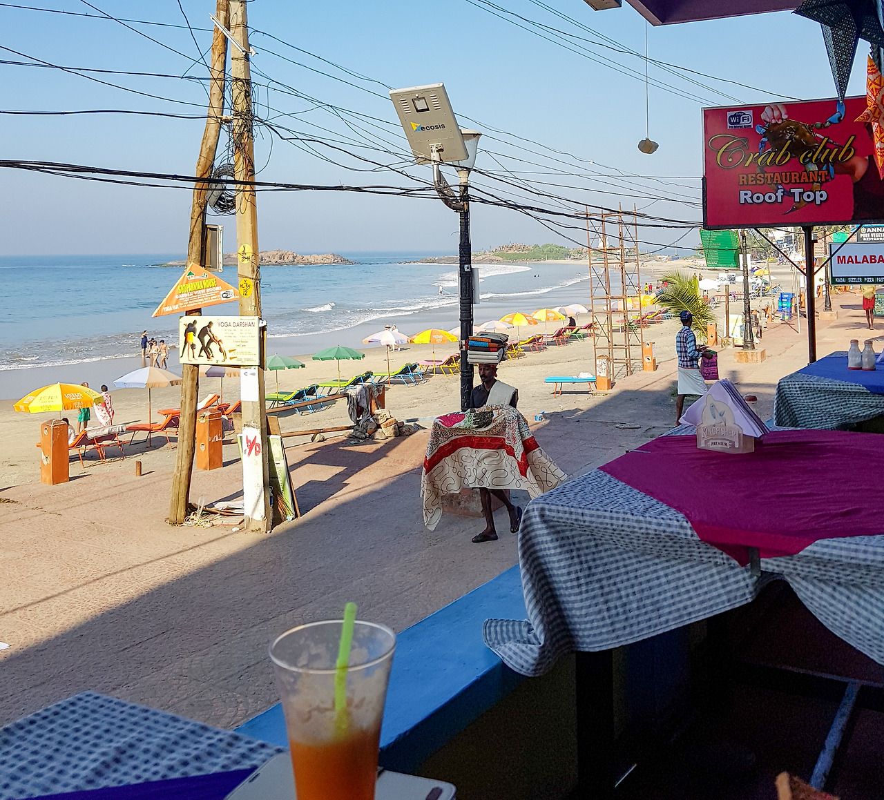 주변을 어슬렁거리던 택시 운전사가 말을 붙인다. 숙소 전화번호를 넘겨주자 다이얼을 돌린다. 수화음 너머로 응답이 없다. 이대로 공항 밖에서 밤을 지새울 수는 없으니 그를 따라나선다. 정찰제 택시는 픽업 요금보다 저렴하고 목적지인 코발람(Kovalam)까지는 30분 거리이니 괜찮을 거라며 울적함을 달랜다. 티루바난타푸람은 대도시이고 코발람은 이름난 휴양지이지만 가는 길은 명성에 어울리지 않게 황량하기 그지없다. 전조등을 끄면 빛 하나 없는 암흑 속을 헤쳐 가야 한다. 불 꺼진 단층 건물들은 스릴러 영화의 배경을 연상시키듯 흉흉한 분위기를 풍기고 잘 닦이지 않은 도로는 돌부리에 걸리듯 차체를 덜컹이게 한다. 해안도로 너머 펼쳐진 아라비아 해는 낭만은 온데간데없이 시커먼 물결만 넘실댄다. 더욱이 구글 오프라인 지도가 위치를 잡아내지 못해 기사 양반이 제대로 가고 있는지 확인할 수도 없다. 침이 꼴깍 넘어가고 표정이 딱딱하게 굳지만 불안함을 티 내면 안 된다. 예약 확인서를 만지작거리며 무사히 도착하기만을 바라는 찰나 길가에 차가 끼익 선다.