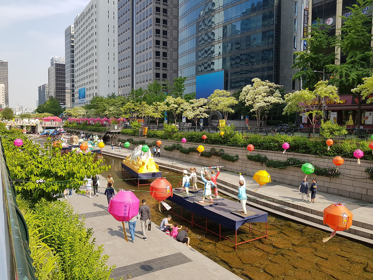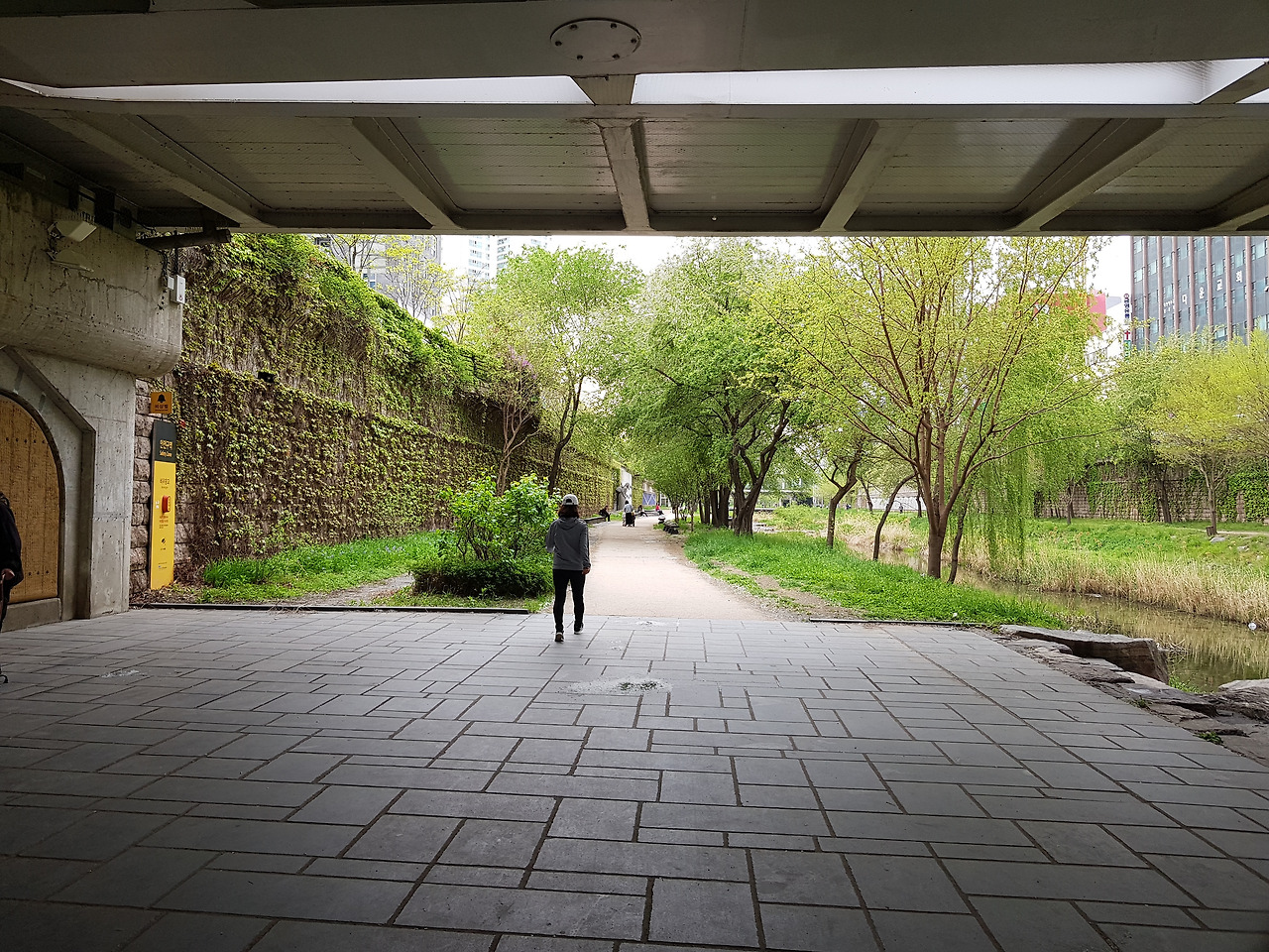 청계천과 성북천은 물살을 공유하지만 각자의 뚜렷한 개성이 있다. 두 천의 경계인 성북천교에서 성북천으로 꺾어 드는 순간 물길이 좁아진다. 수로의 폭, 물의 양, 발바닥에서 무릎으로 차오르는 깊이뿐만이 아니다. 마치 강의 본류에서 지류로 거슬러 올라갈 때 같은 모태임에도 다른 내음과 소리로 전이되듯이 풍경의 온도가 달라진다. 아무래도 청계천의 인상은 도심에 가깝다. 고층빌딩 숲 사이를 구르는 차량의 덩치와 빠른 호흡이 그러하다. 걷는 사람의 색채도 선명하다. 어느새 서울의 랜드마크가 된 청계천은 관광객들로 북적인다. 짧은 식사시간을 활용해 기분전환 겸 산책을 나온 직장인들도 있다. 퇴근 후, 혹은 주말이면 데이트하러 나온 연인과 가족도 빼놓을 수 없다. 이에 반해 성북천은 지극히 사적이다. 그 지역에 뿌리내린 동네 주민의 친밀한 삶의 공간으로 그들의 일상을 엿보기에 제격이다.