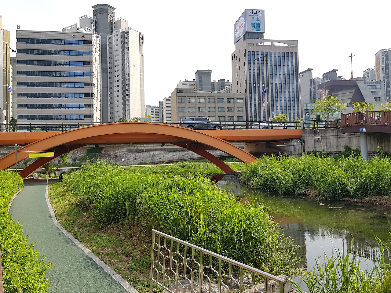성북 3교부터는 다리의 세상이다. 다리의 이름은 각각이 어떤 기능을 담당하고 있는지 상징적으로 보여준다. 성북 3교 이전의 끝말에는 대부분 ‘교’가 붙는다. 이에 반해 성북 3교에서 마지막 분수광장까지는 ‘다리’로 끝맺는다. 적어도 이 구역에서 교(橋)와 다리는 본질적으로 다르다. 교(橋)는 필요의 산물이다. 나이가 지긋하고 골격이 단단하다. 뚱뚱한 대형버스에게도 등을 내준다. 교량은 도시가 원활하게 흐를 수 있도록 돕는 부속품의 성격을 띤다. 반면, 다리는 쓸모에 가깝다. 있으나 없으나 크게 상관은 없지만 소답한 일상의 발걸음을 채운다. 그래서 다리는 머리가 닿을 듯 키가 작고 조금 엉성하다. 낮은 지붕과 값싸 보이는 재료와 소소한 꾸밈이지만 마음은 다리 쪽으로 기운다. 구불구불 둥글게 난 물길과 양 옆으로 난 좁은 산책로를 걸을 때면 그늘과 빛줄기가 번갈아 교차하는 따스함에 미소 짓는다. 오늘도 나는 그 길을 걷는다.