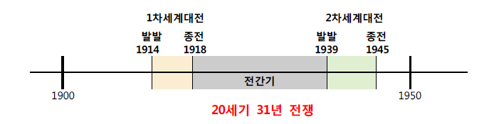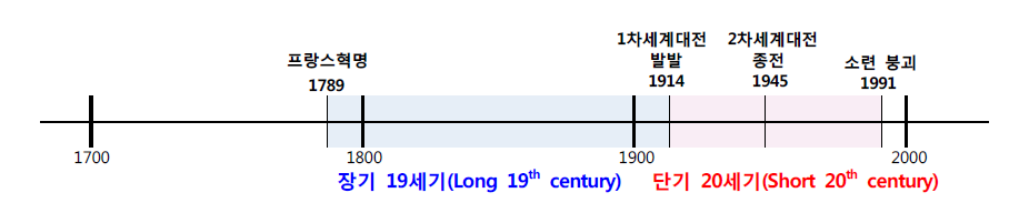 ‘단기 20세기(Short 20th Century)’는 1차 세계대전의 시작인 1914년부터 공산주의 체제의 소련이 붕괴한 1991년까지를 뜻한다. 1, 2차 세계대전은 힘의 구조를 재편하여 새로운 균형을 이루었다. 미국과 소련을 주축으로 한 동서 냉전 시대를 연 것이다. 자유주의·민주주의 진영과 사회주의·공산주의 진영의 치열한 대립은 1991년 소련의 붕괴와 함께 승패가 갈렸다.