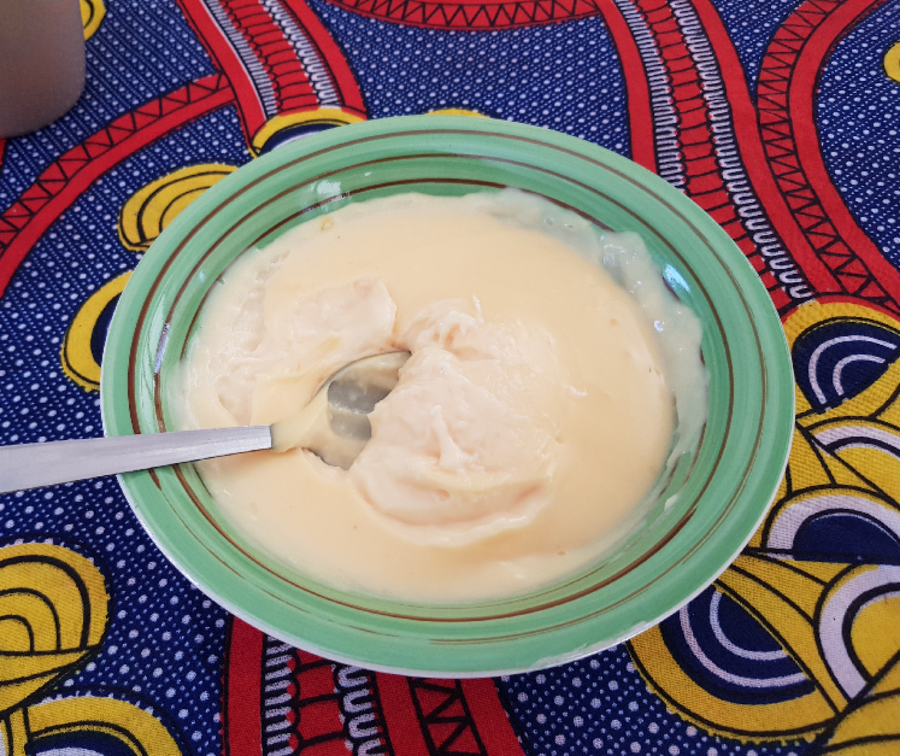 보글보글 끓고 있는 시마와 노란 옥수수 포리지