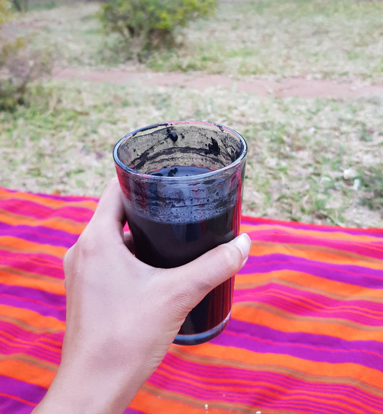과연 베네사의 말대로 끈적이는 사약처럼 생긴 음료는 별다른 맛이 나지 않는다. 한 번에 털어 넣고 내려놓으니 고개를 가로젓는다. 한 잔 더! 연거푸 두 컵을 마시고 시원하게 웃으니 다들 배를 잡으며 입술을 가리킨다. 거울을 보니 가루가 닿은 입 주변이 조커의 입매처럼 새까매졌다.