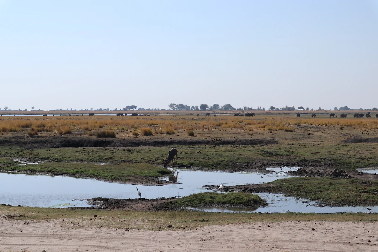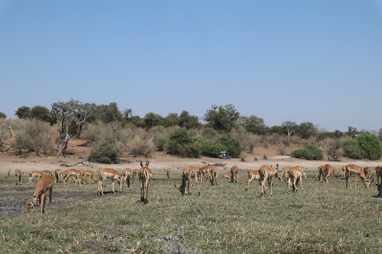 여행자의 입장에서는 맹수를 목격할 기회가 비교적 적어 아쉬울 수도 있겠다. 하지만 숨 돌릴 틈 없이 등장하는 동물들에 초베의 풍경은 지루할 틈이 없다. 물가에는 워터벅 가족들이 한가로이 풀을 뜯는다. 나뭇가지와 꼭 닮은 뿔을 가진 스프링복은 덤불 사이에서 숨을 고르고 있다. 톰슨가젤 부부는 등산 중이다. 초베에서 가장 쉽게 눈에 띄는 임팔라, 쿠두, 스프링복, 톰슨가젤, 워터벅은 영양류에 속하지만 생김새가 조금씩 다르다. 처음에는 다 똑같이 보이는데 꼼꼼히 뜯어보면 구분이 된다. 특징을 찾아 이름을 맞추는 재미가 쏠쏠하다.