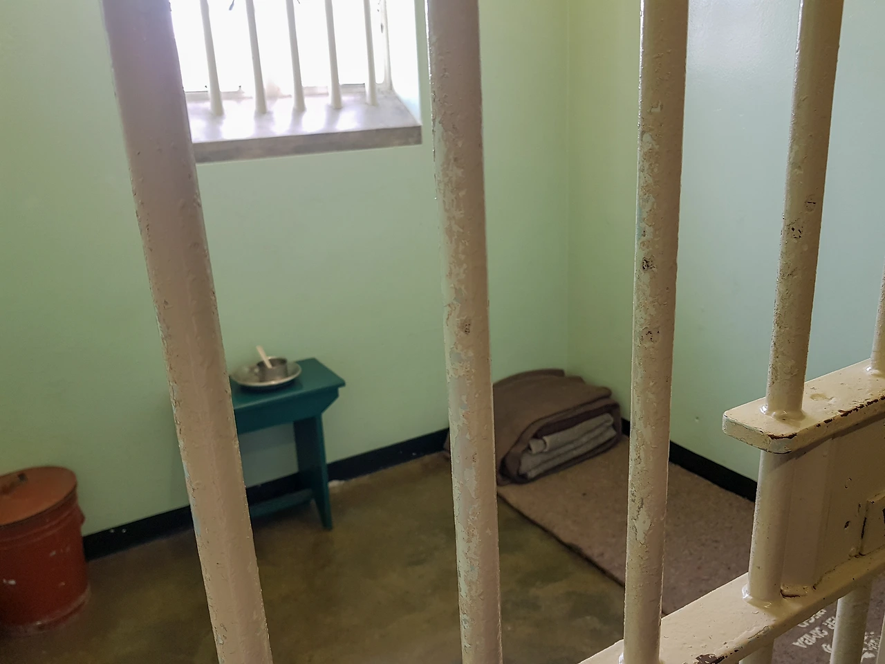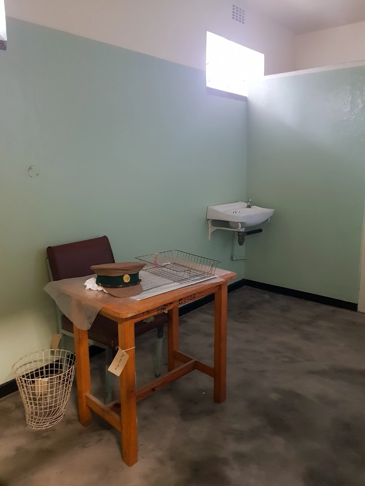 교도관의 각진 모자는 위압감이 느껴진다. 넬슨 만델라는 이곳 독방에서 18년을 보냈다.