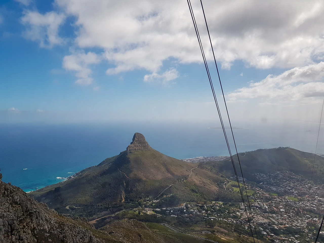케이프타운의 중심가 워터프런트와 테이블마운틴 정상에서 내려다 본 로벤 아일랜드