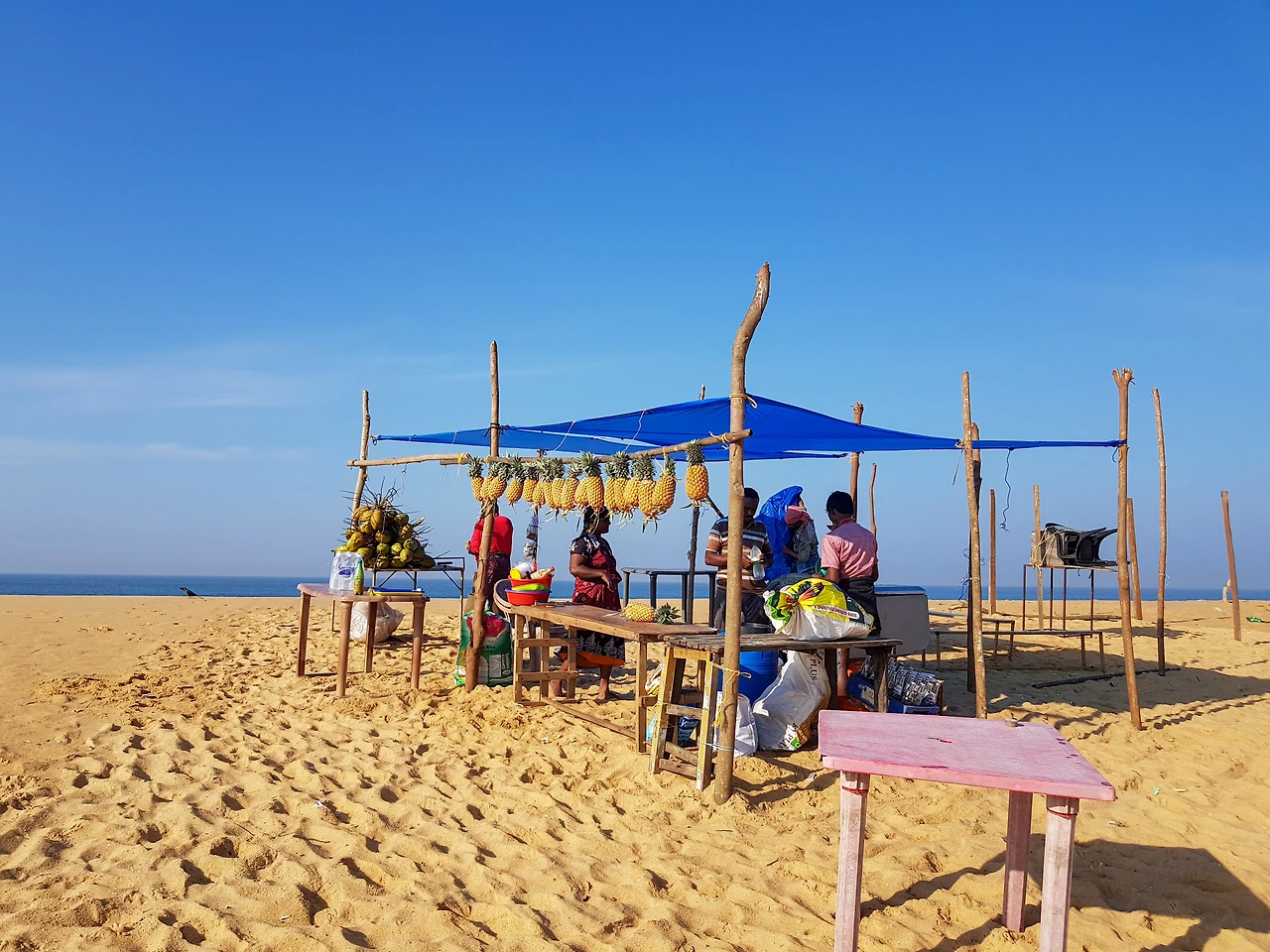 백워터와 바다 사이에는 긴 띠처럼 이어진 백사장이 있다. 사구는 성격이 다른 물줄기를 구분하는 경계선이다. 서편에서 아라비아 해의 파도가 밀려온다. 모래사장에 부서지는 거품은 동쪽 운하의 고요함을 깨지 못한다. 언덕에는 나무기둥과 푸른 천막이 세워져 있다. 수로에 배를 댄 상인은 부지런히 짐을 실어 나른다. 테이블과 의자, 음식 재료를 담은 상자와 포대가 쏟아진다. 사시사철 후덥지근한 여름을 보내는 케랄라인들은 최소한의 의복만 갖춰 입는다. 물길의 남성은 웃통을 벗고 치마 모양의 천을 허리에 감고 있다. 푹푹 발이 빠지는 모래와 하루에도 몇 차례 담그는 물속에서 신발은 무용한 도구다. 해변의 노천 식당은 세로 기둥에 가로 가지를 엮어 파인애플을 매달고 있다. 손님의 이목을 끌 탐스러운 장식이다. 태양의 높이가 중천을 향해 올라갈수록 살갗을 태우는 빛의 세기가 강렬해진다. 두어 시간 뒤면 관광객들이 운하에 배를 대고 아라비아 해를 감상하며 맛있는 오후를 보낼 테다.