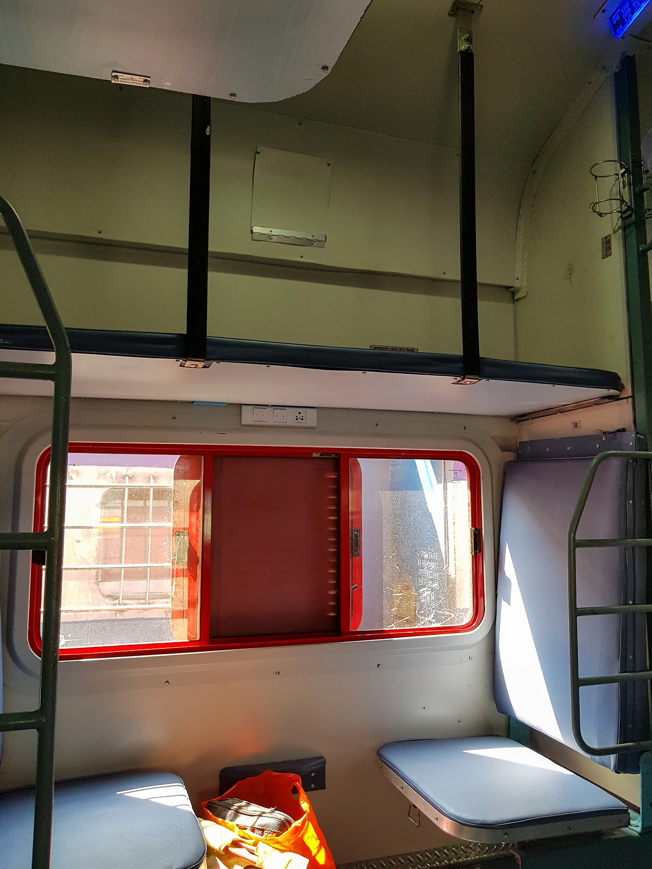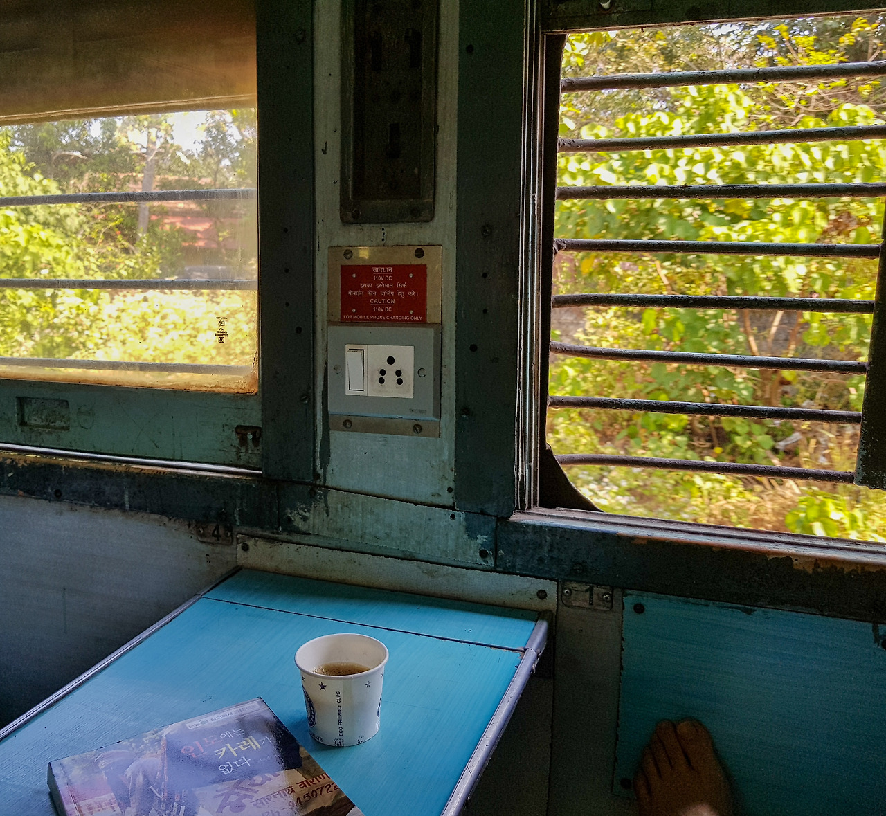 속 끓이던 문제를 해결하고 나니 그제야 객실 풍경이 눈에 들어온다. 슬리퍼 등급은 통로를 기준으로 가로로 놓은 침대와 기차 벽면에 붙인 세로 침대로 나누어진다. 우리나라 우등 버스에서 2-1 좌석 구조와 비슷한데 두 명이 함께 앉는 자리에 가로 침대를 설치한 형태다. 한 칸은 삼 층 침대가 마주 보고 있어 여섯 명이 함께 쓴다. 낮에는 보통 이 층을 접어 등받이로 쓰고 일 층에 함께 앉는다. 따로 각 칸을 구분하는 문이나 커튼이 없어 누구나 드나들 수 있다. 세로 침대는 이 층짜리지만 승객의 통행에 고스란히 노출되어 훨씬 불편하다. 협소한 공간에도 있을 건 다 있다. 에어컨은 없지만 천장에 선풍기가 있고 철창이 달린 창문이 있다. 벽면에는 거울과 옷걸이, 콘센트가 있고 창가 아래에는 펴고 접을 수 있는 작은 식탁이 있다. 통로 쪽에는 사다리와 손잡이가 있어 위층으로 오르내리기 편리하다. 널널한 침대에 다리를 쭉 뻗으니 그간이 긴장이 사르르 녹는다. 건너 창밖을 바라보다가 문득 열차 문을 열고 달리고 있다는 사실을 깨닫는다. 저속으로 주행하면 무임승차도 어렵지 않겠다.