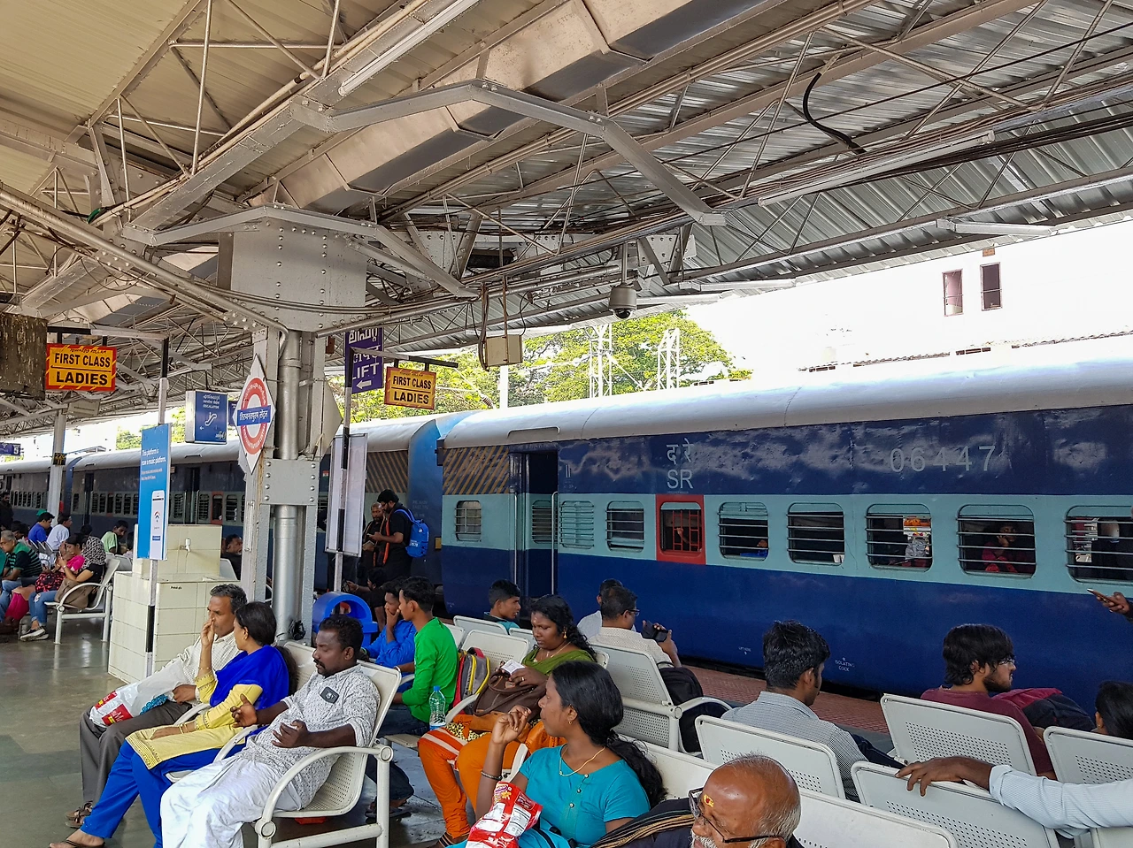북적대는 대합실을 벗어나 승차장으로 향한다. 철제 구름다리 아래로 기다란 회색 지붕이 다닥다닥 붙어있다. 객차 한 량이 길고 대 수도 많아 세계에서 두 번째로 인구가 많은 인도의 스케일이 실감 난다. 플랫폼에는 하늘색 가로 줄무늬로 가운데를 꾸민 파란색 열차가 정차 중이다. 칸마다 등급을 나타내는 글씨가 힌디어와 영어로 쓰여 있다. 승강장 기둥에는 빨간 원 중앙에 파란 가로선이 있는 표지판이 자리한다. 영국의 지하철 무늬를 본 따 만들었는지 판박이다. 윗 반원에는 케랄라의 말라얄람어, 중심선에는 힌디어, 아래 반원에는 영어로 역의 이름을 표시한다. 인도에서는 영국 식민 지배의 흔적을 심심찮게 발견할 수 있다. 여전히 봄베이, 코친과 같은 옛 지명으로 부르고 영어를 공용어로 사용한다. 운전대를 오른쪽에 두고 좌측통행을 원칙으로 한다. 사회제도부터 일상 속 작은 면면까지 녹아들어 있는 역사를 목격할 때마다 비슷한 과거를 가진 한국인으로서 묘한 감정이 든다.