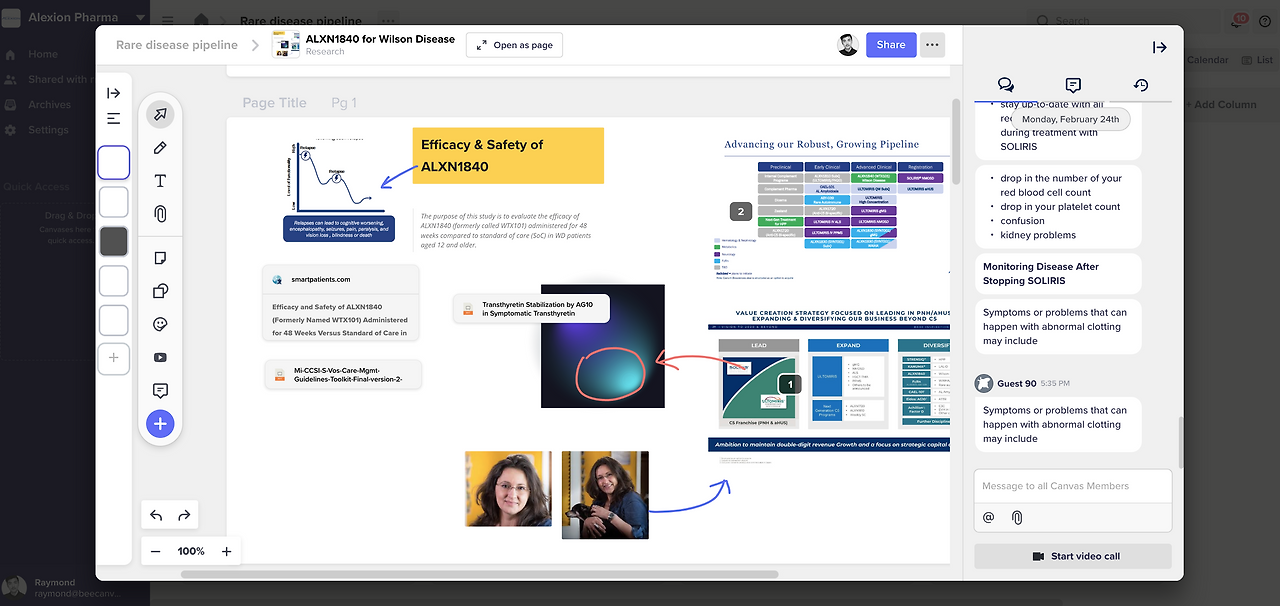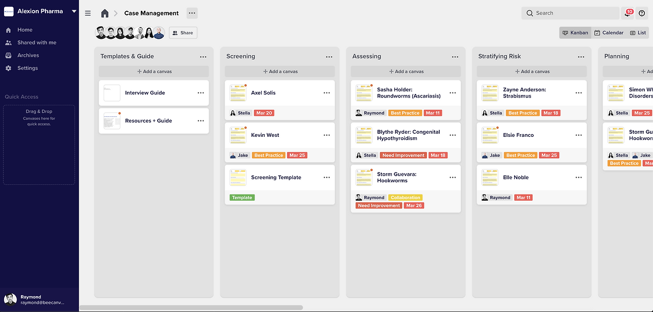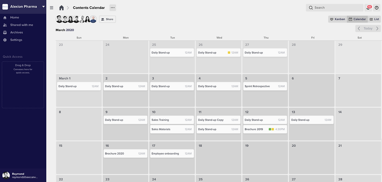 비캔버스는 이러한 문제를 해결해준다. 사람들이 화이트보드에 자기 생각을 명확하게 전달하고, 그것을 기반으로 의견을 주고 받으며 최고의 결과물을 빚어나가는 일련의 과정을 온라인에서도 문제없이 진행할 수 있다. 저 위의 업무 방식만 바꾸면, 해결된다. '캔버스'는 이러한 마법이 일어나는 공간이다. Kanban 보드나 달력에서 만들어낸 태스크를 누르면 캔버스가 열린다.