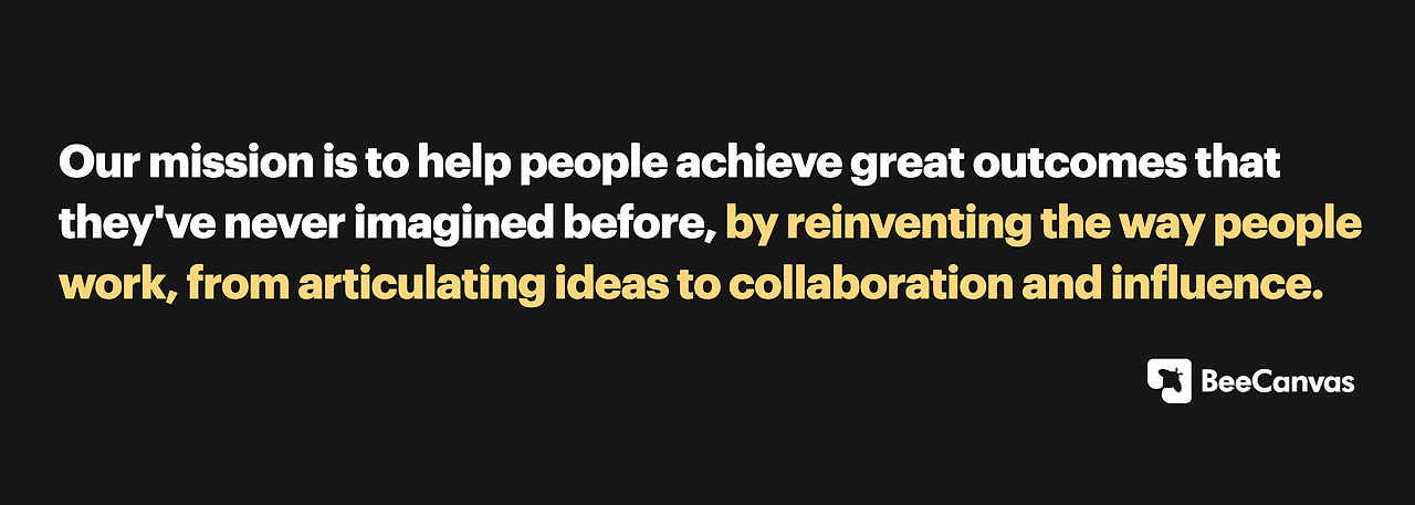 우리는 사람들이 그들이 기대한 것 보다 더 큰 위대한 성과를 낼 수 있다고 믿습니다. 일하는 장소, 일하는 분야, 누구와 일하는 지와 상관 없이, 우리는 위대한 성과를 내는데만 집중해야 합니다. 생각부터, 생각을 표현하는 것, 협업하고 최종 액션 가능한 플랜을 만드는 것 까지 BeeCanvas 를 통해 Visualize 해보세요. 비캔버스는 그동안 Visualize 되지 않았던 모든 것을 Visualize 함으로서 그동안 닿을 수 없었던 높은 수준의 성과를 빠르게, 강력하게 만들어낼 수 있도록 도와줄 것입니다. 비주얼 기반의 협업은 디지털 협업에서 바디랭기지처럼 직관적이고 효과적입니다. 이것은 언어, 인종, 문화, 관습, 컨택스트를 뛰어넘습니다.