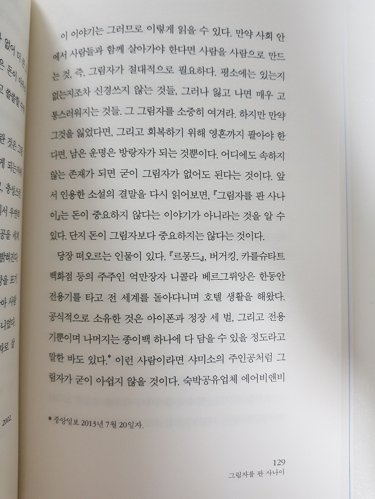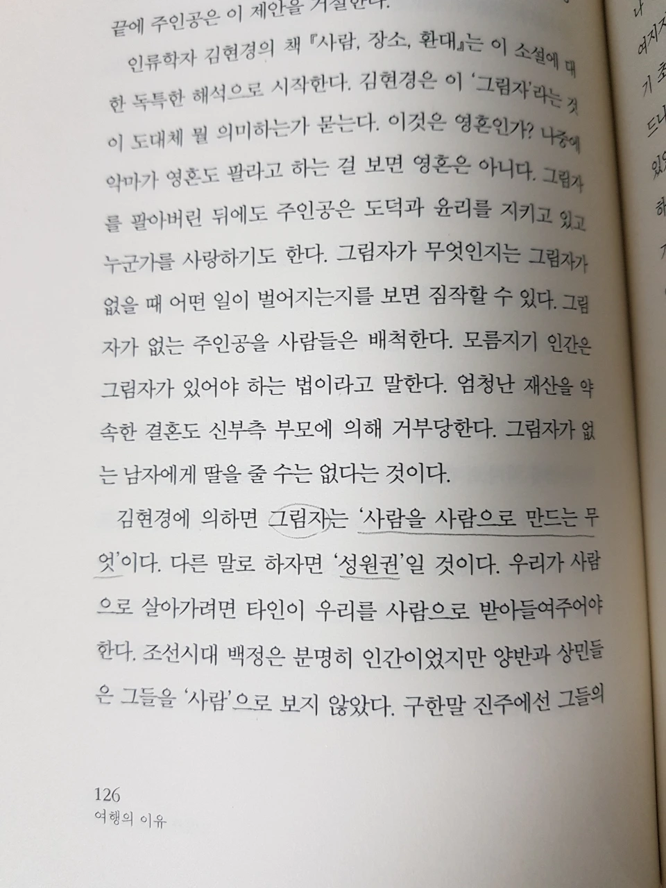 여행자는 그림자가 필요하지 않다. 어디에 속하여 사람들과 함께 살아가지 않고 떠돌아다니면 되기 때문이다. 어디엔가에 속하지 않는 삶. 책임과 의무가 없지만 동시에 사람 대 사람으로 받아들여질 수 없는 삶. 어떨지 상상이 잘 되진 않는다.