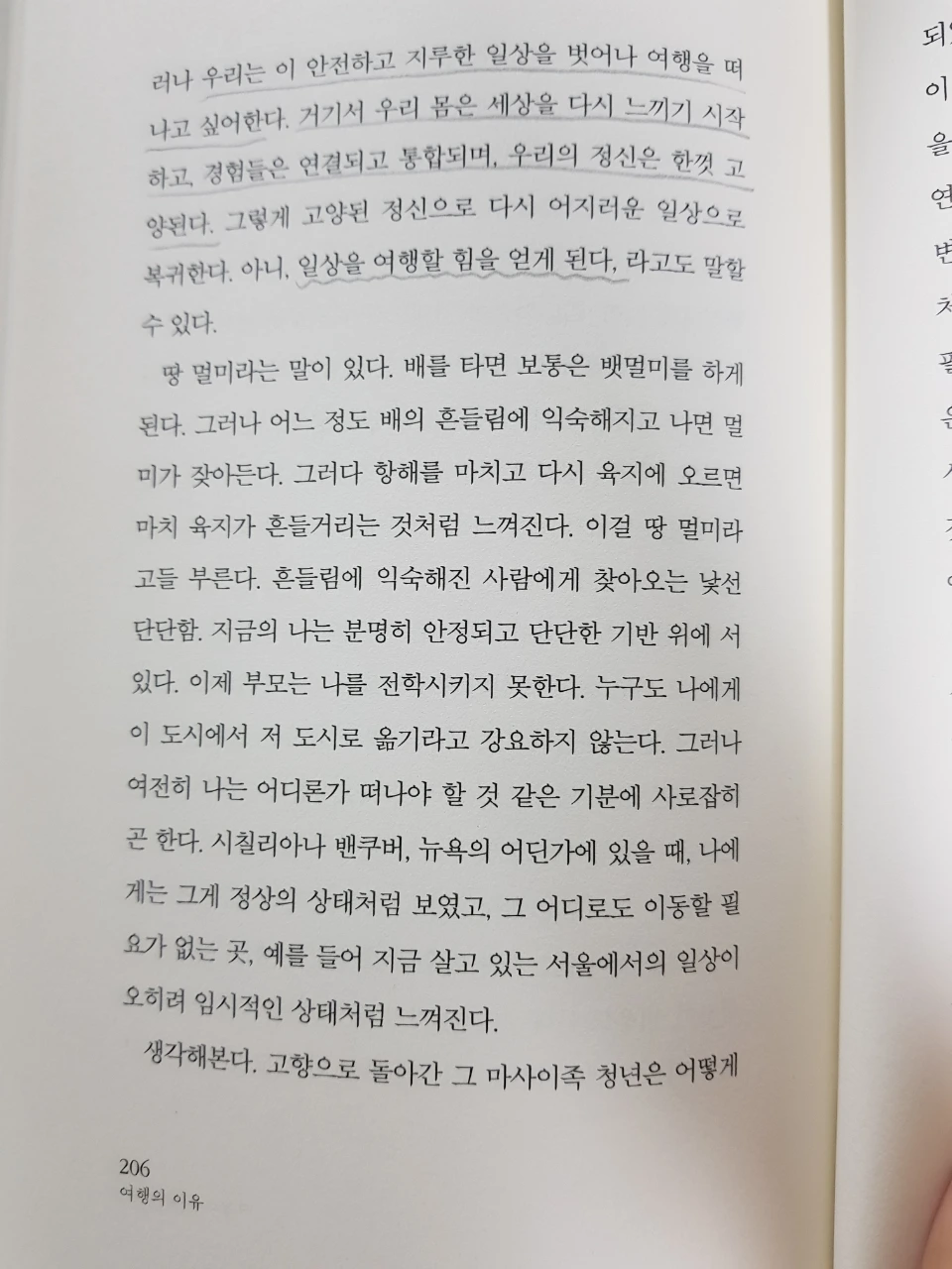>> 여행이 길어지면 생활처럼 느껴진다. 마찬가지로 충분한 안정이 담보되지 않으면 생활도 유랑처럼 느껴진다.