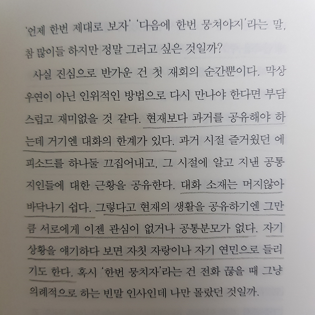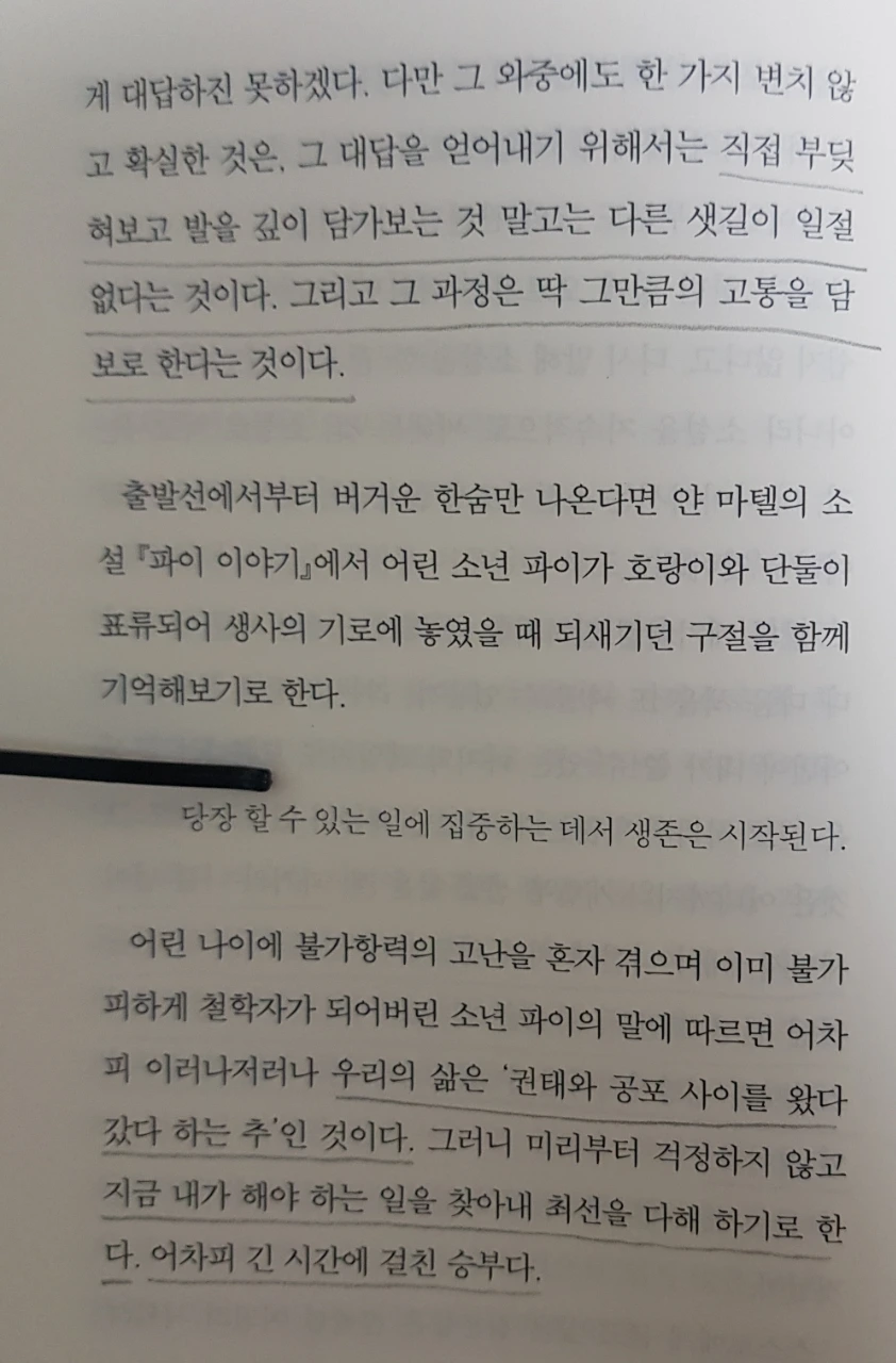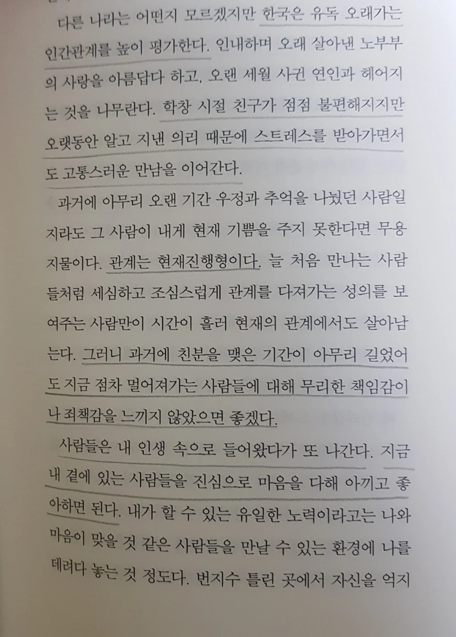 점차 멀어져 가는 사람들에 대한 무리한 책임감이나 죄책감을 갖지 말라는 문장에 위로를 받는다.
