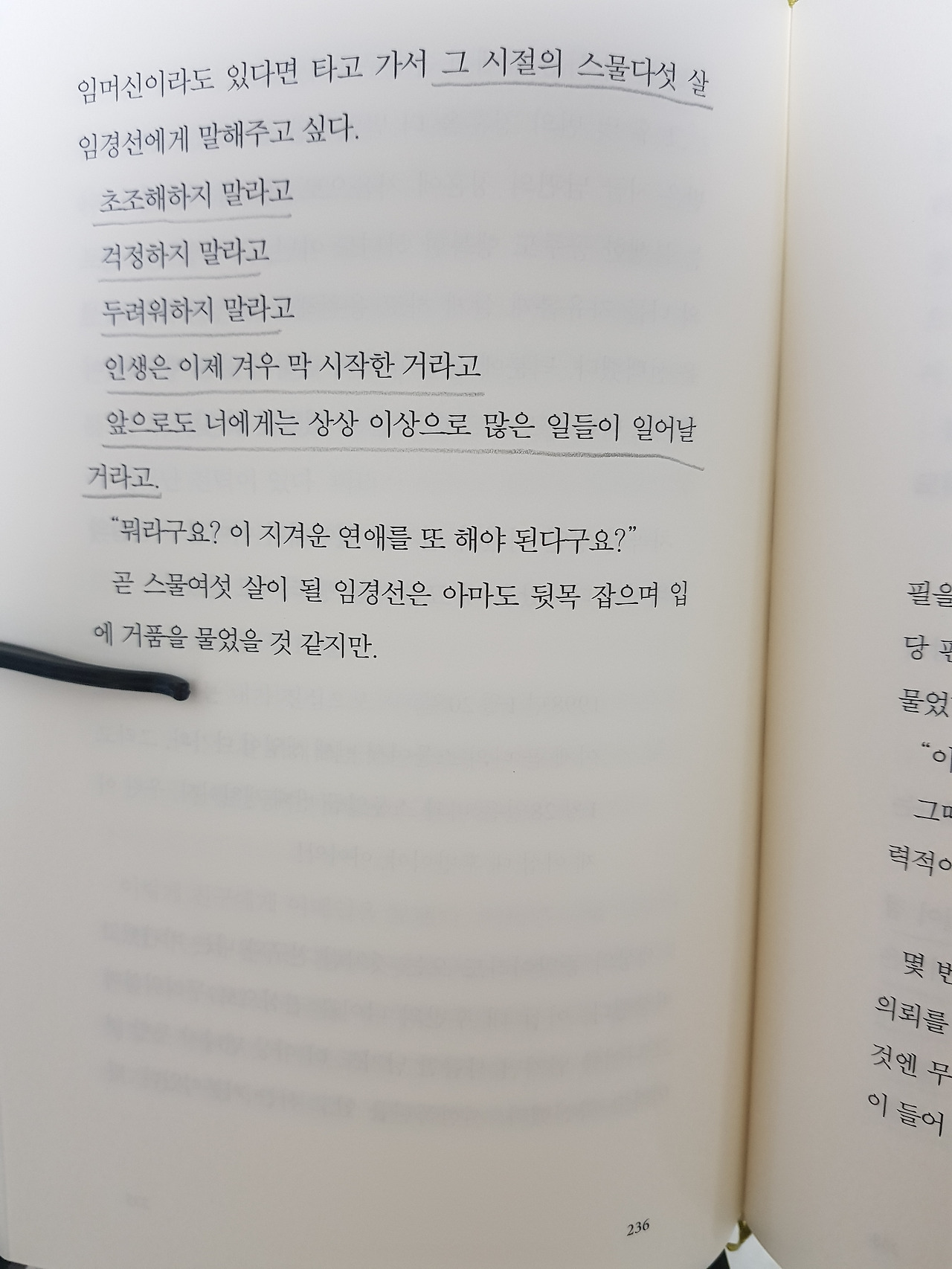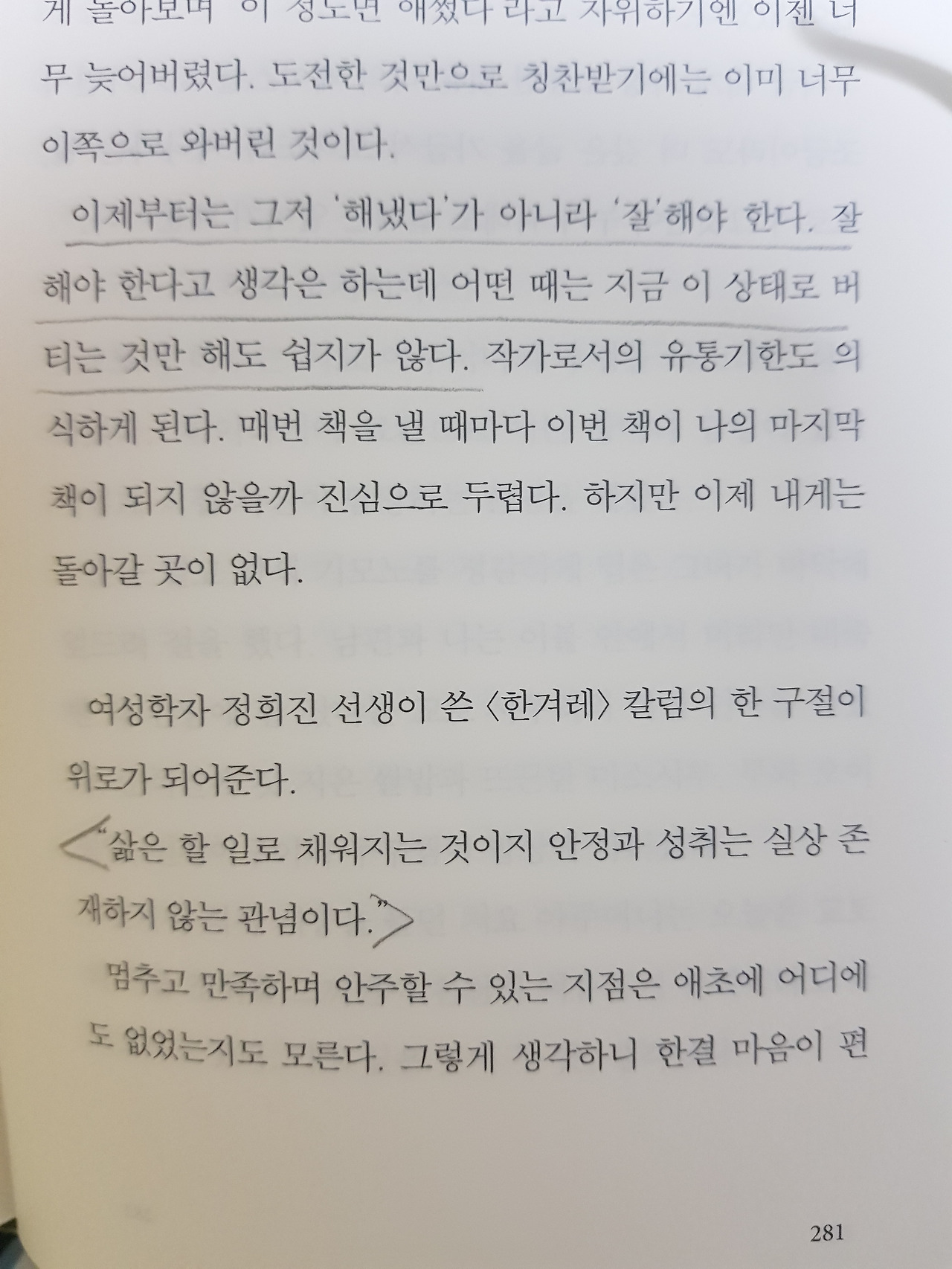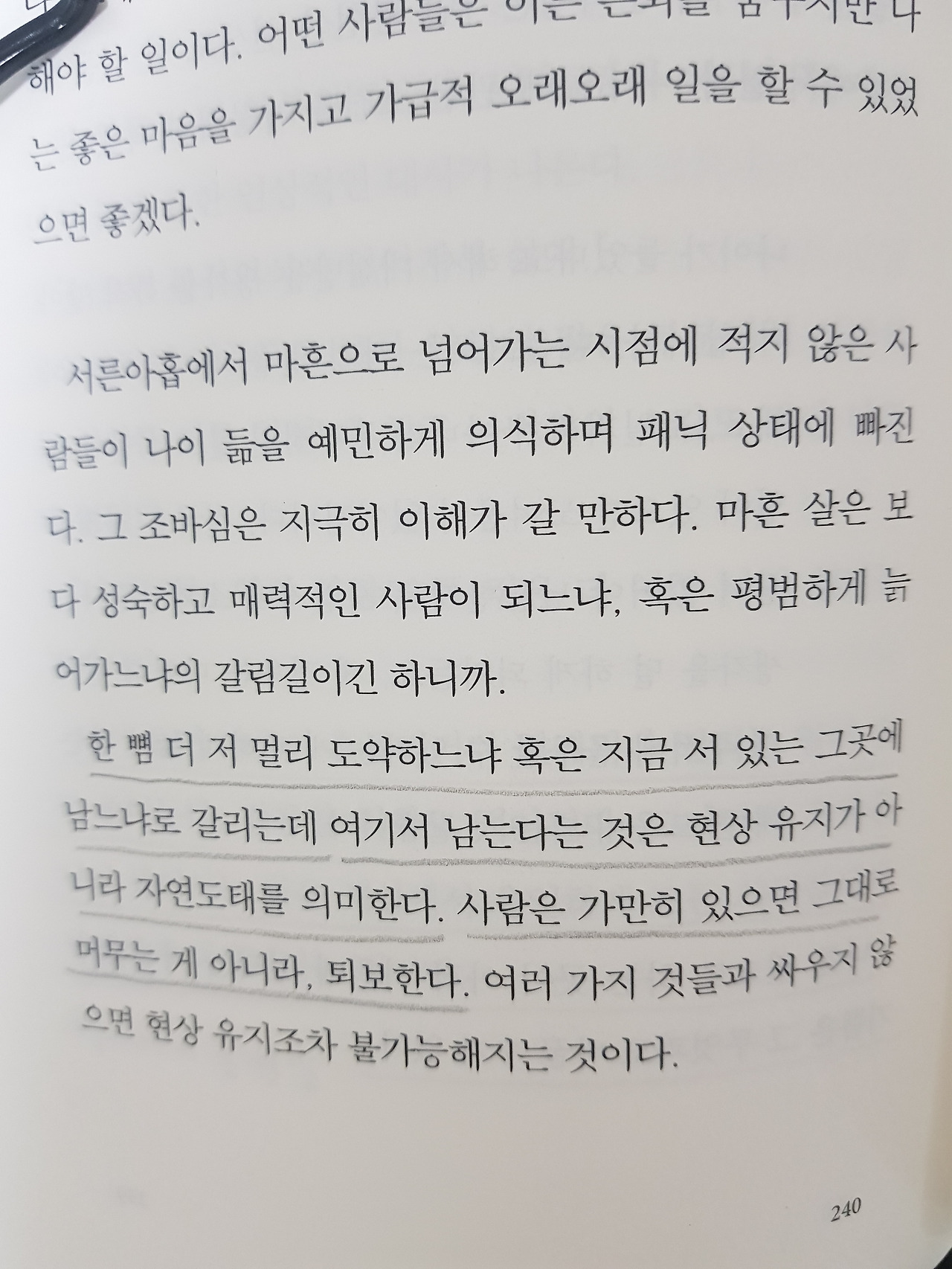 점차 멀어져 가는 사람들에 대한 무리한 책임감이나 죄책감을 갖지 말라는 문장에 위로를 받는다.