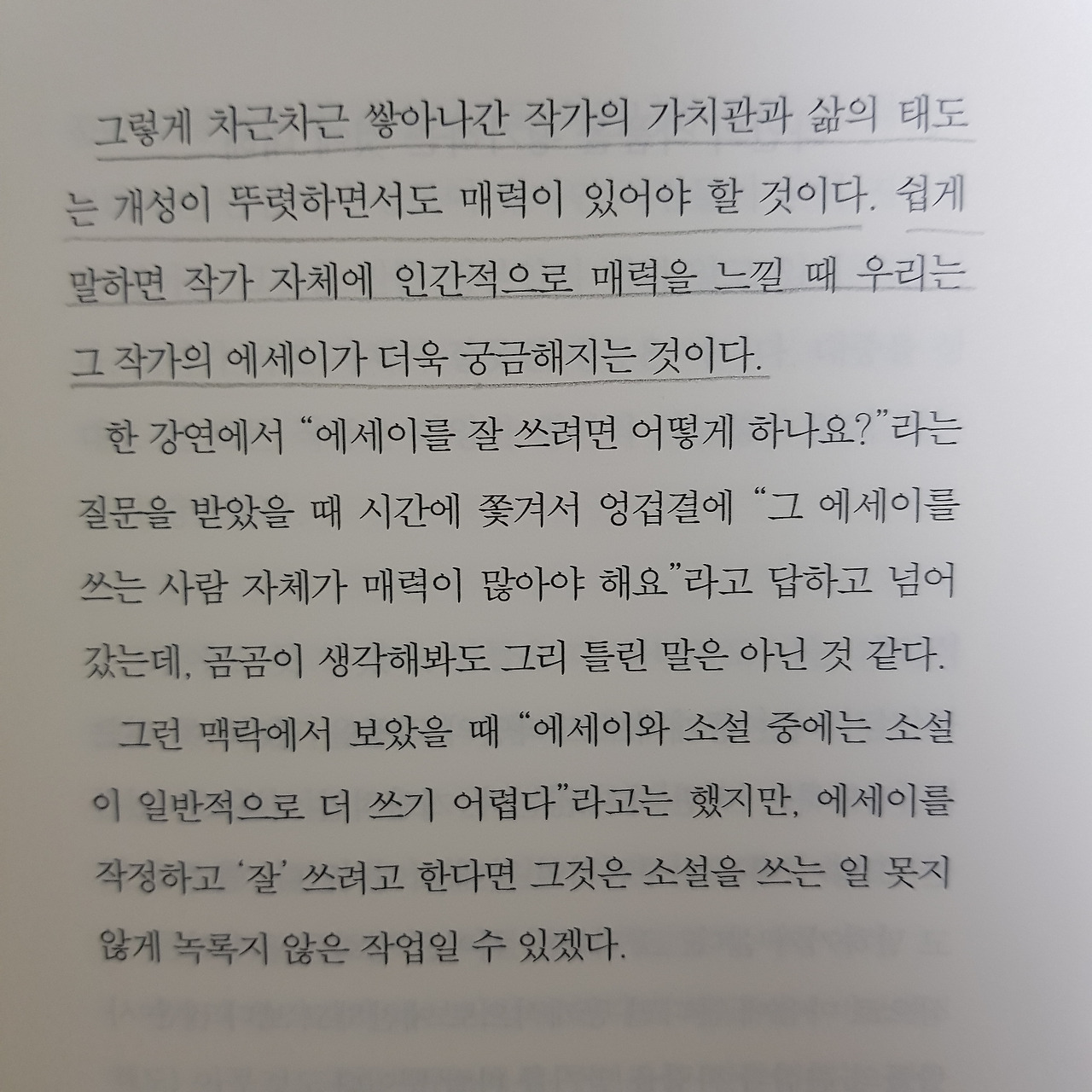 포장까지 깔끔하게 되어있었기 때문에 내용도 보지 못했지만 제목만으로 끌려서 바로 구입했다. 읽으며 공감되는 부분이 많았고 만약 내가 에세이를 쓴다면 이런 에세이를 쓰고 싶다는 생각을 했다.