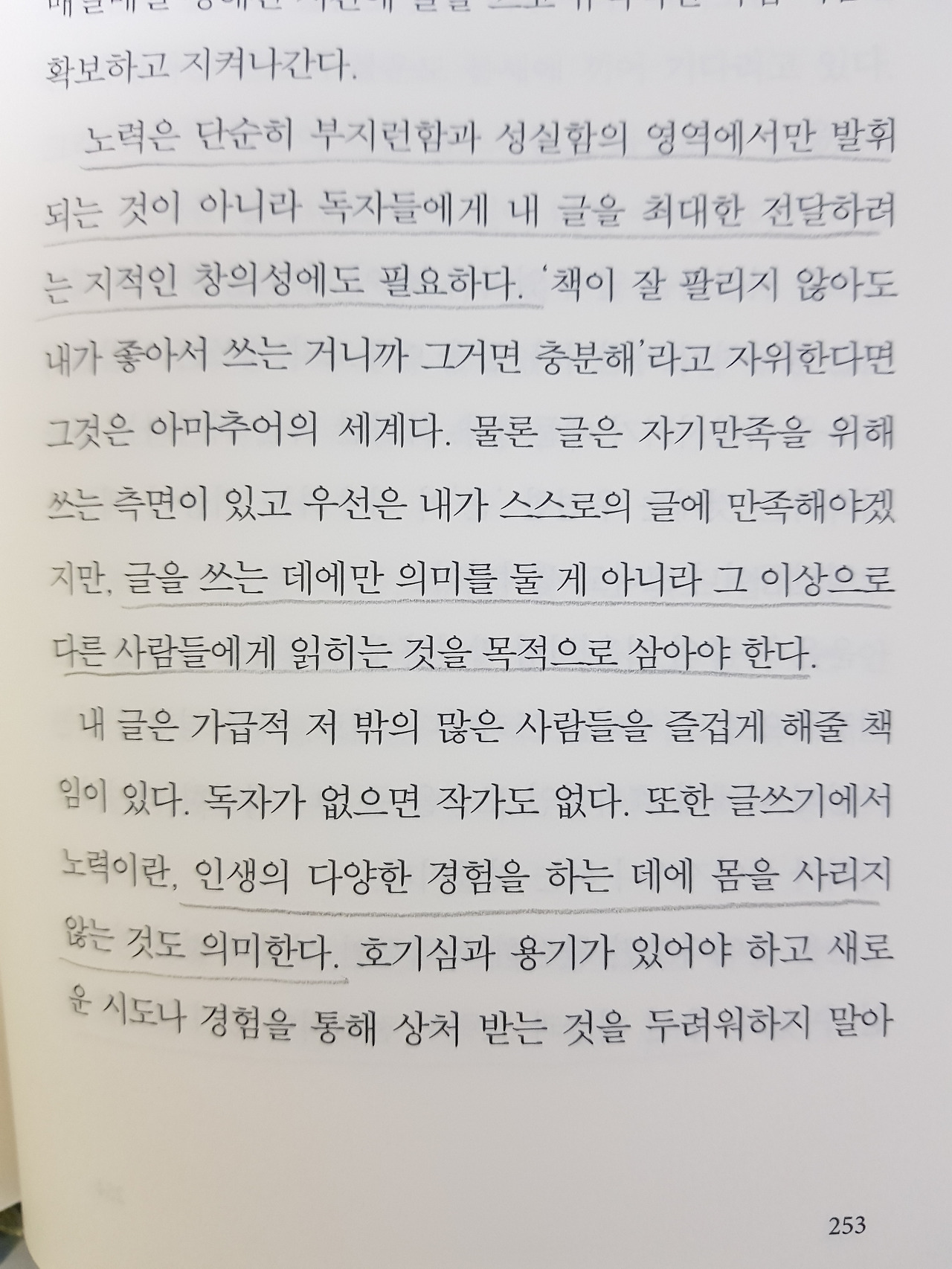 조금은 신변잡기 적인 내용도 들어있었기 때문에 모든 내용에 공감하고 인상 깊었다고 말할 수는 없겠다. 하지만 내가 항상 머릿속으로 생각하지만 글로 정리가 되지 않던 주제에 대해 명료하고 심도 깊게 표현되어 있는 부분들도 많았다. 답답했던 내 머릿속이 명쾌하게 뚫린 기분이 들었다. 그 부분을 중점적으로 정리하려고 한다.