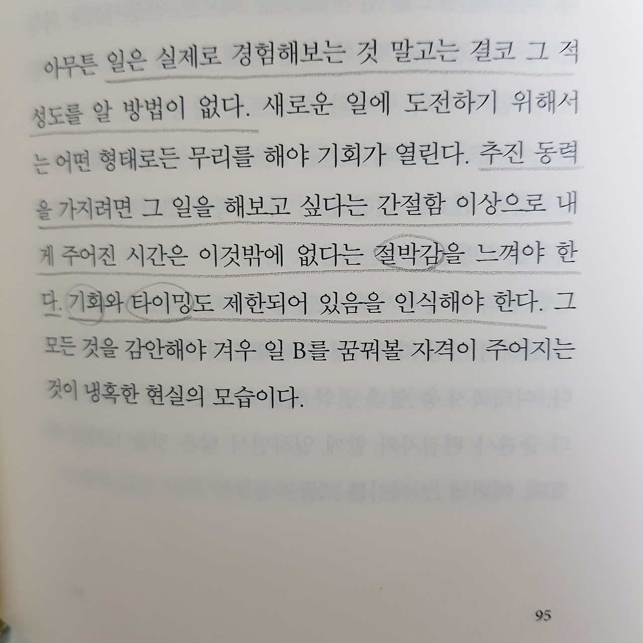 간절함을 넘어서는 '절박감'을 느껴야 한다고까지는 생각해보지 못했다. 간절함을 넘어서는 절박감으로 어떤 일을 시작하려는 결정을 해본 적이 있었나, 되돌아보게 된다.