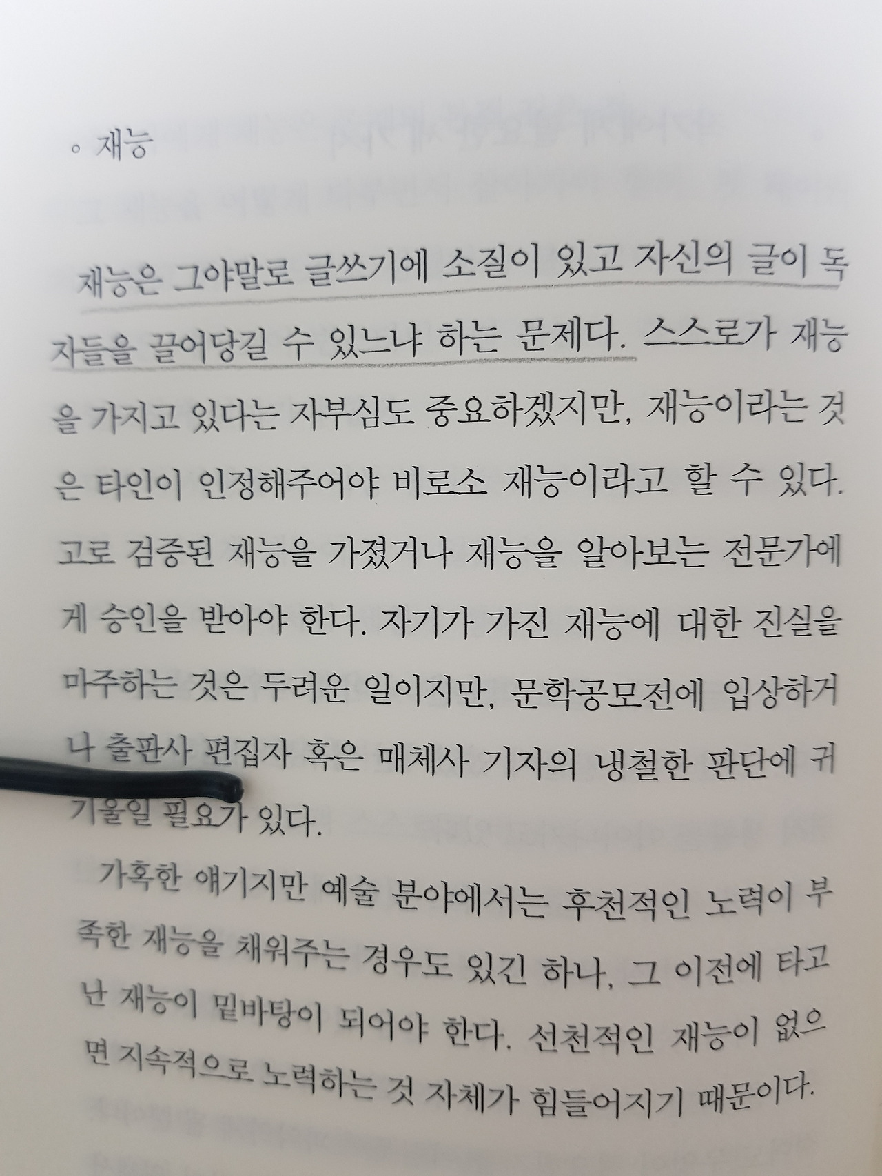 생각해보면 지금까지 무엇 하나 특별하게 재능이 있었던 분야는 없던 것 같다. 곧잘 했던 공부도 상위 몇 퍼센트에 들 정도의 수재는 아니었고 두루두루 다 잘한다는 얘기는 들었지만 그렇다고 재능이 있어 특정 어떤 분야를 파고 들어갈 정도도 아니었다. 재능이 무슨 천재적인 어떤 것이라고까진 생각하지 않지만 '나 이거 잘해'라고 자신 있게 말할 수 있는 것이 얼마나 될까, 생각해보면 잘 떠오르지 않는다.