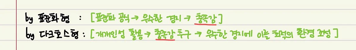 표준화형과 다크호스형은 진행 흐름에서 차이가 나타납니다.
