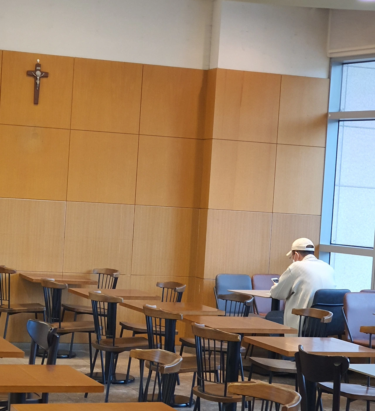 * 병원에서 운영하는 카페라서 그런지 따뜻한 커피 한잔만 시켜도 눈치 보이지 않아서 편하다. 사람 마음이 참! 음료 기다리다가 우연히 뒷모습을 보는데 왜 이렇게 짠한지... 요즘 등이 아프다고 해서 더 굽은 등.