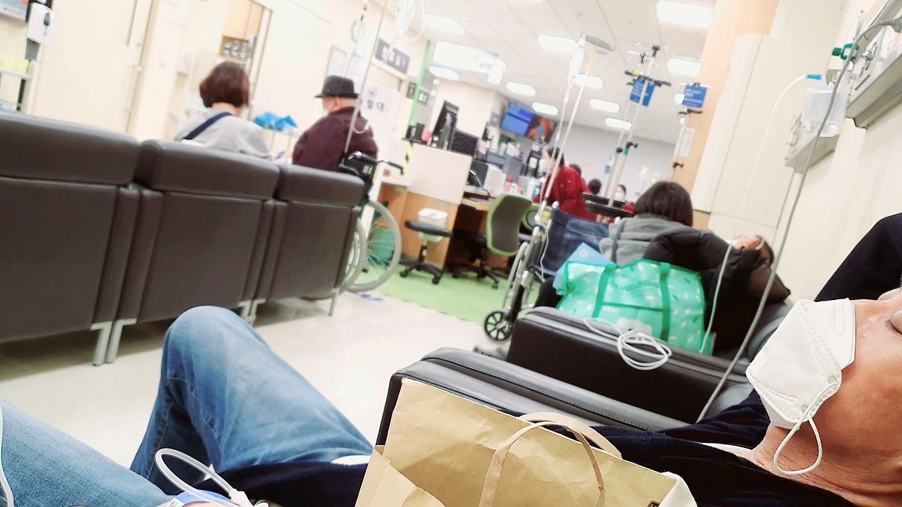 우린 이렇게 베드도 아닌 의자에 앉아 응급실 입원이라는 새로운 세상을 경험하고 있습니다.