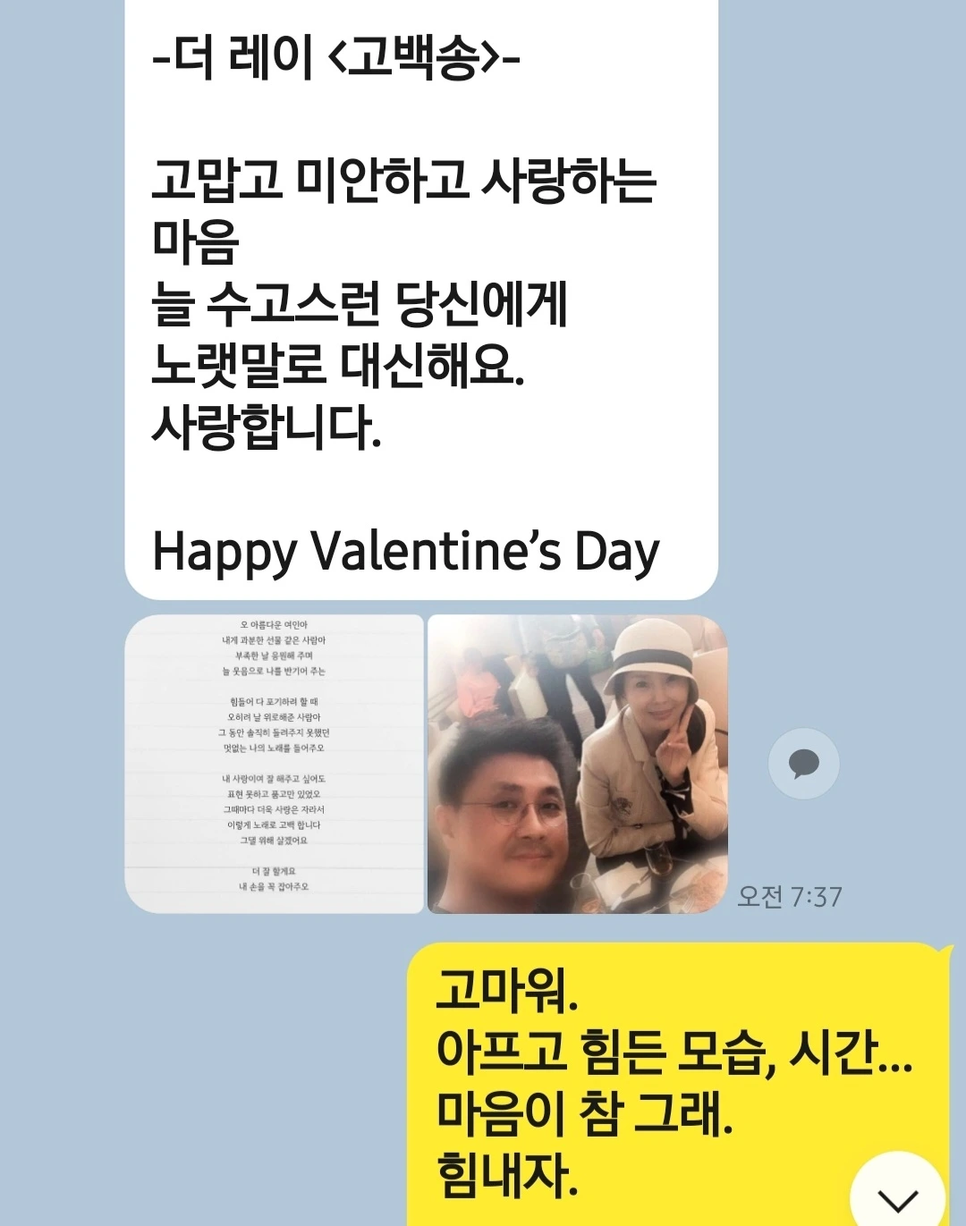 어제는 Valentine's Day 면서도 안중근 의사 사형선고일이기도 했습니다. 카톡으로 보내온 노래가사로 대신한 글에 제대로 표현을 못했습니다. 원래 제가 말 수가 많은 편도 아니지만 더 그런 듯하여 미안하다고 바짝 마른 곰탱이 남편에게 지금 말해주고 싶습니다.