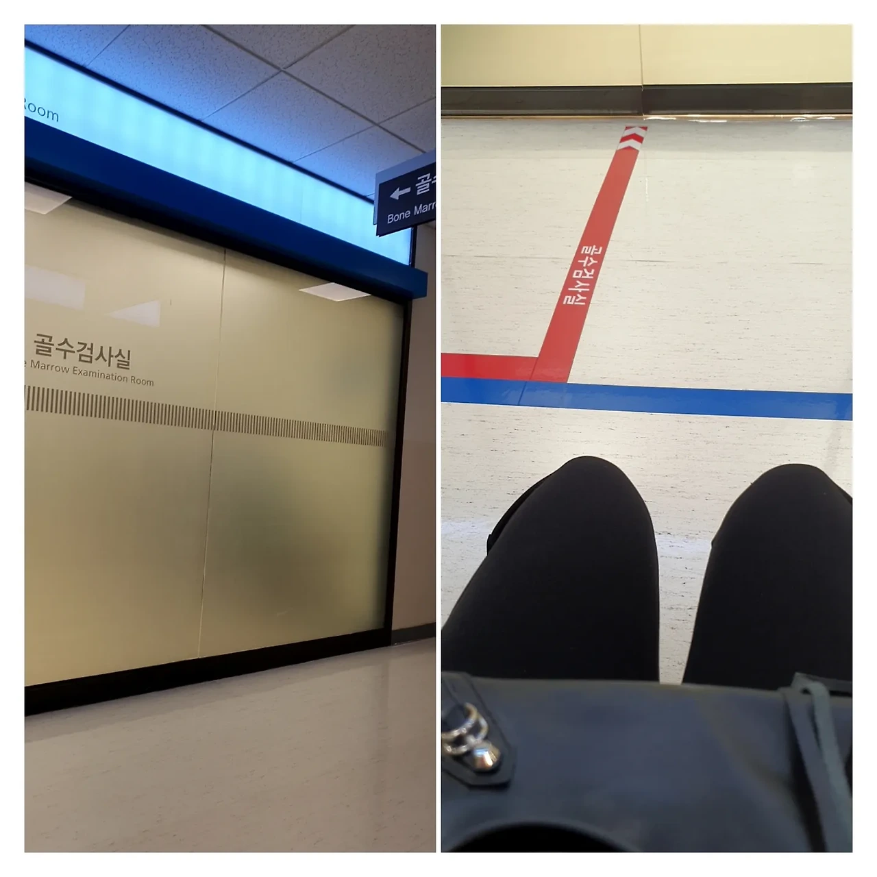 다시 떨어지게 된 시간. 앞으로 3시간이 될지 잘 모르겠다. 오늘은 골수검사가 어렵지 않아야... 또, 지혈이 잘 되어야 될 텐데....... 부작용이기도 하지만, 옆지기도 신경 쓰였는지 오늘따라 눈이 더 빨갛게 충혈이 되어 있다.